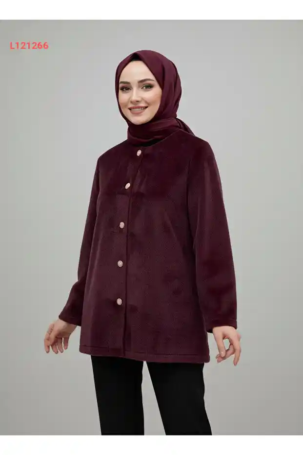 جاكيت أنغورا معدني الأزرار م...