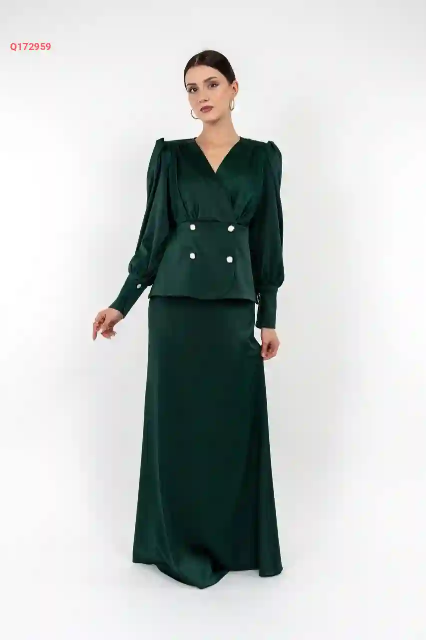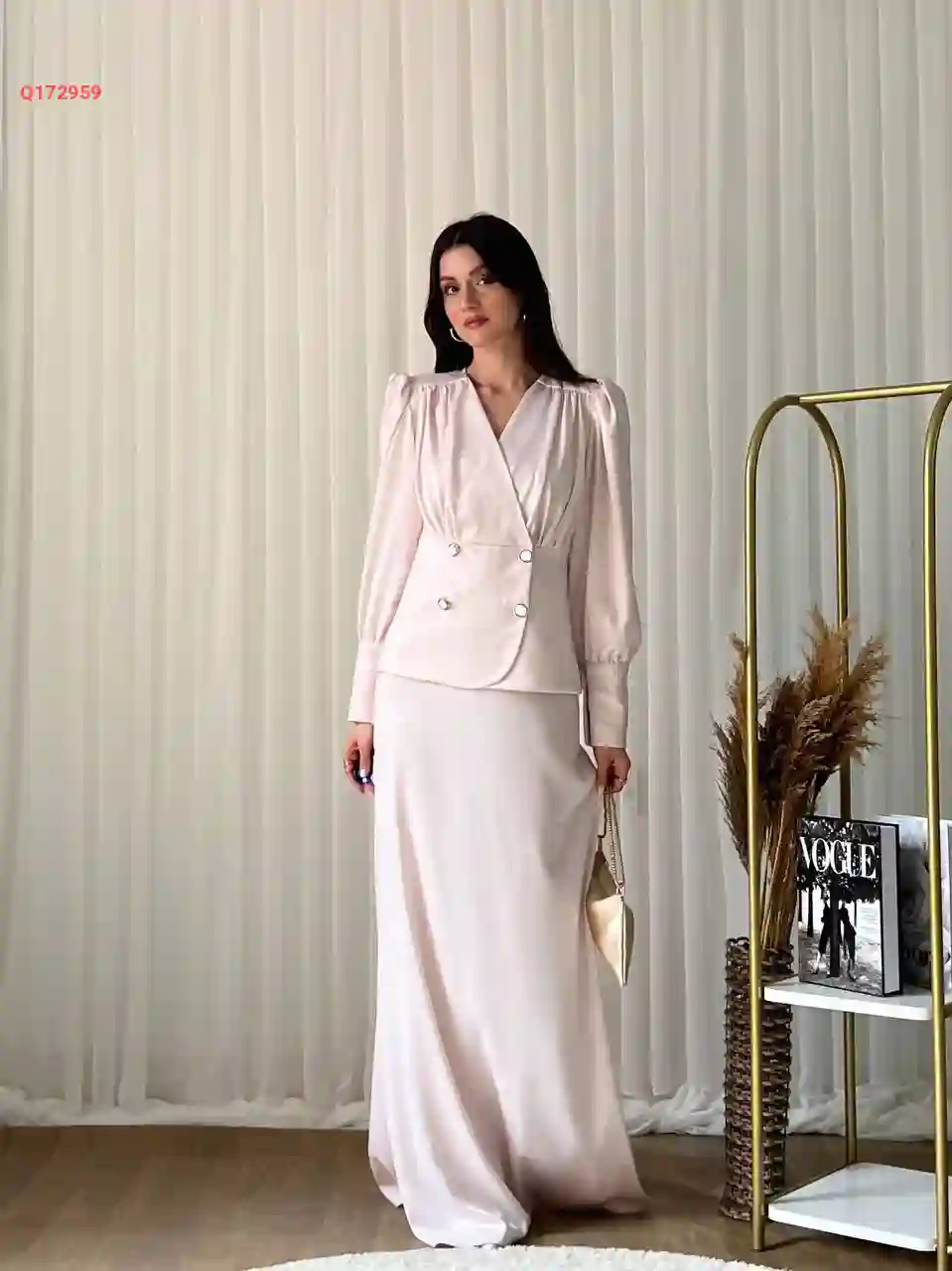 طقم بنطال مع جاكيت طويل بسحاب وطاقيه مع جيب