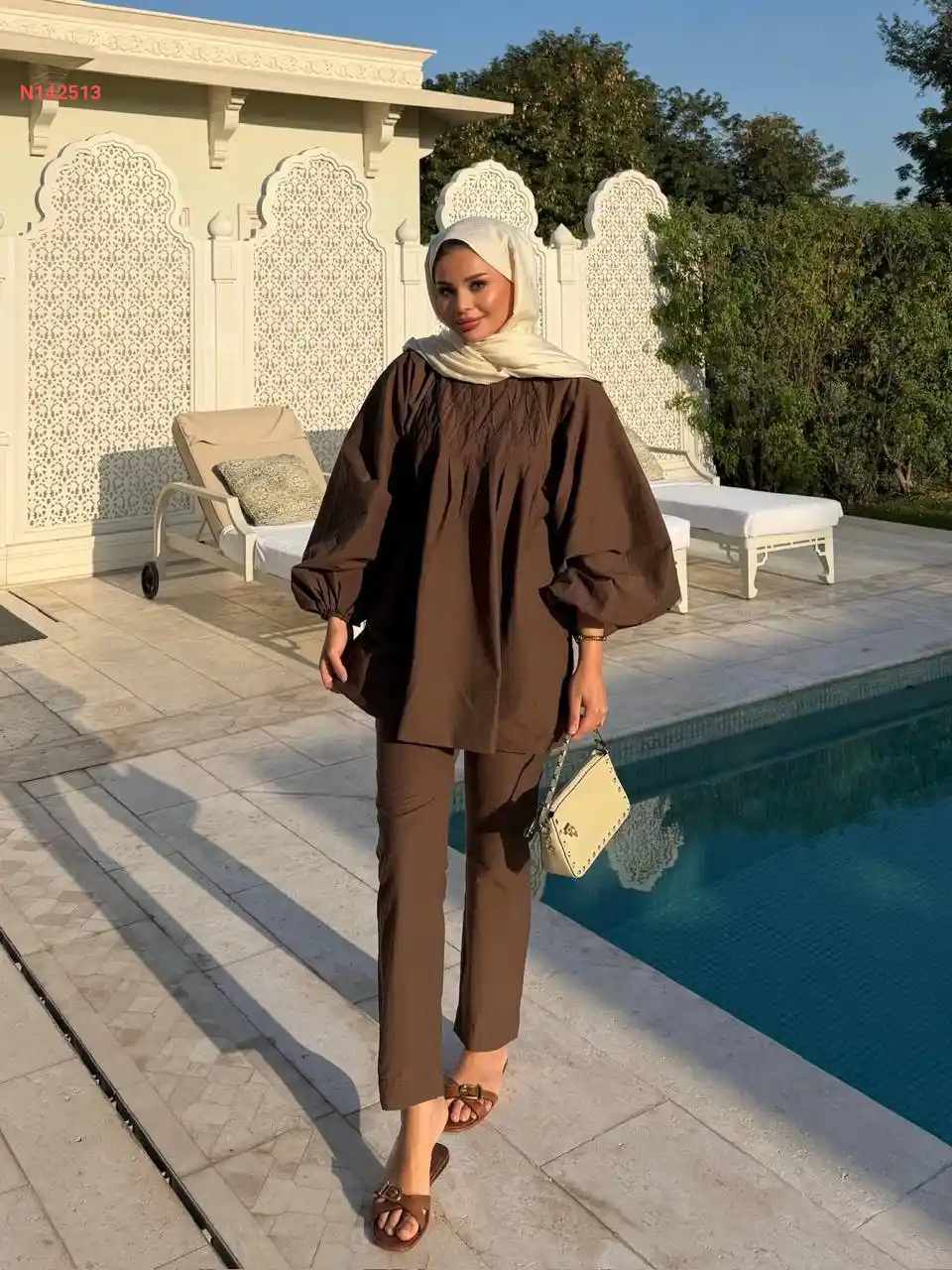 طقم قطعتين طول ١٢٠ سم مع بنطلون مبطن كامل 🥰 مقاسات ٤٠/٤٢/٤٤/٤٦/٤٨/٥٠