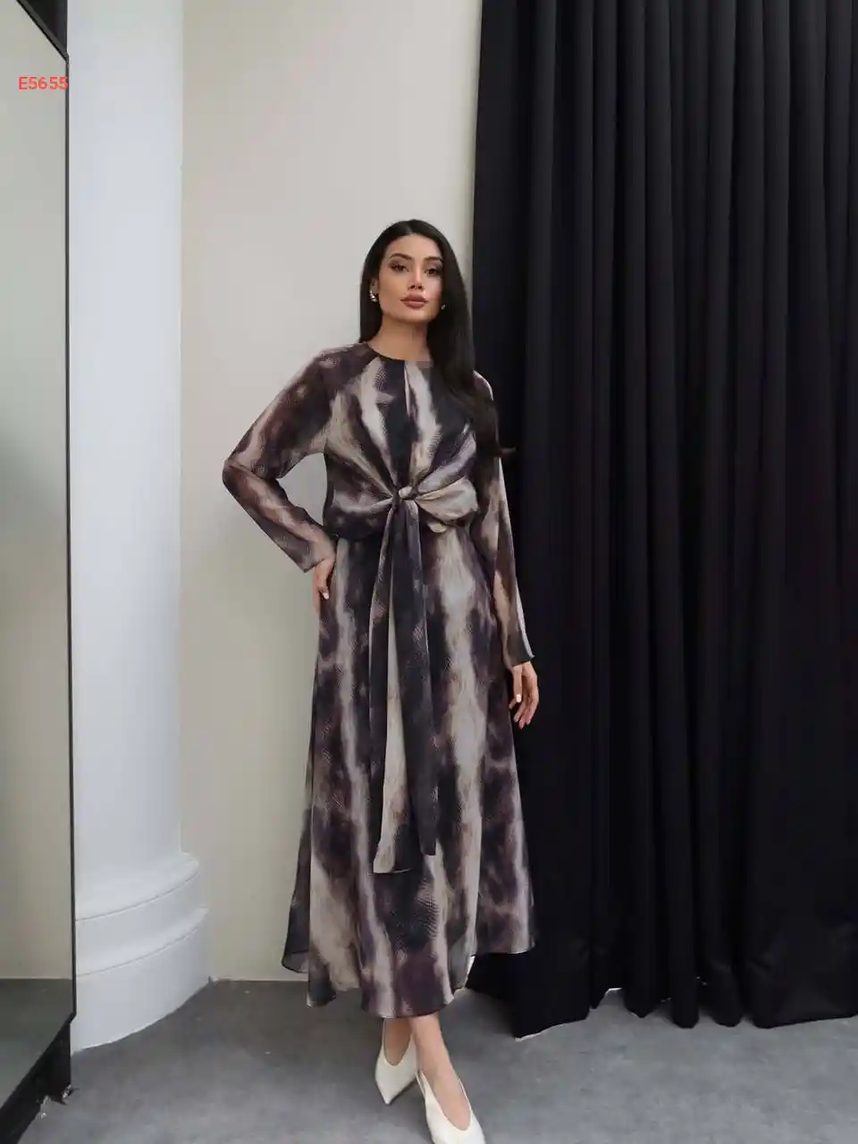 فستان طويل بشقه اكمام طويله