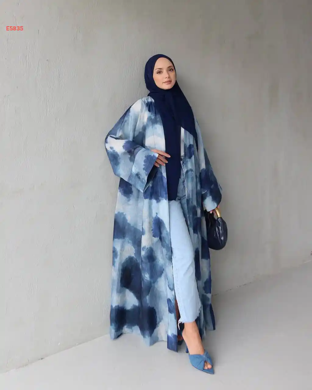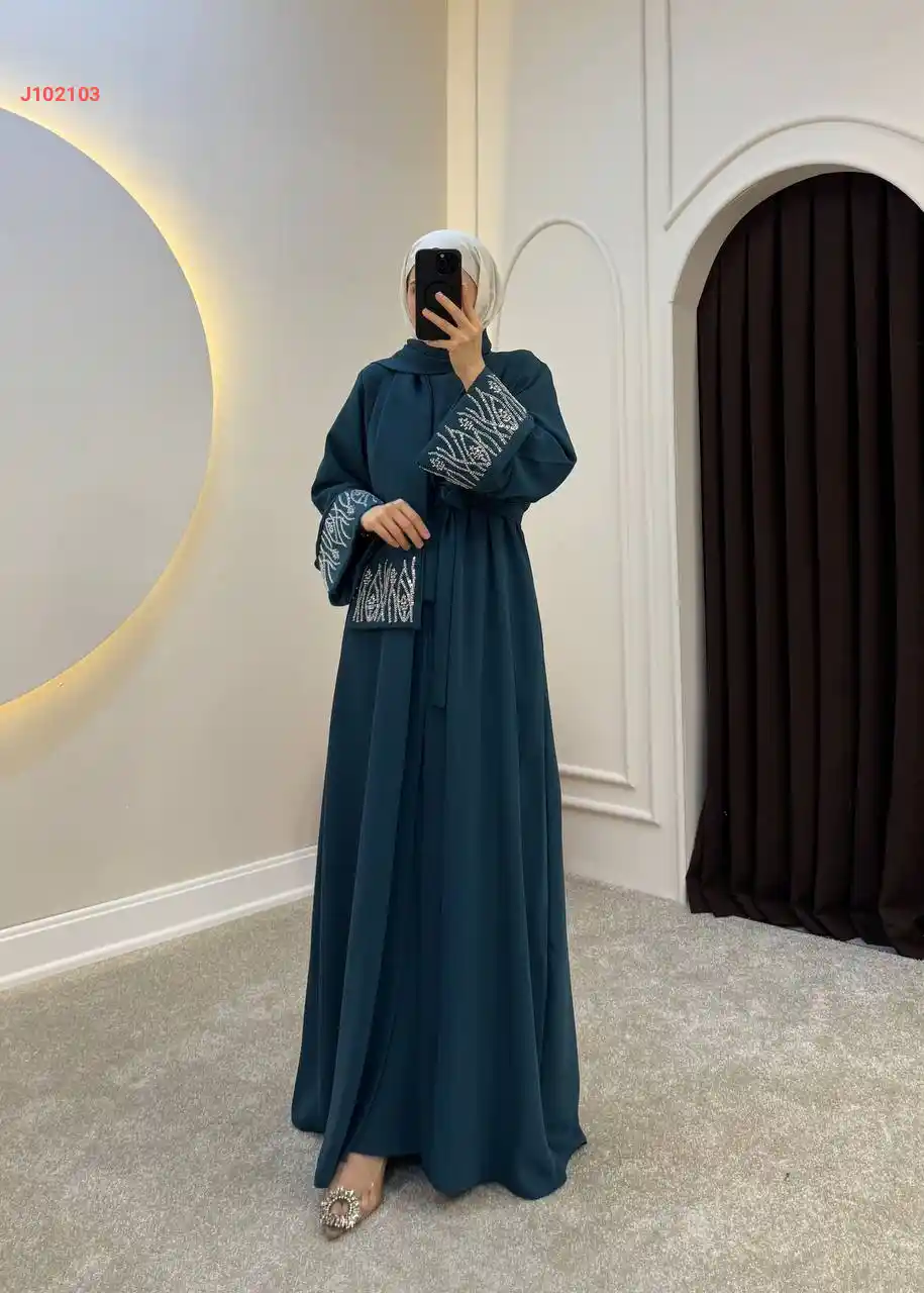 عباية بأزرار مع شال وأكمام ت...