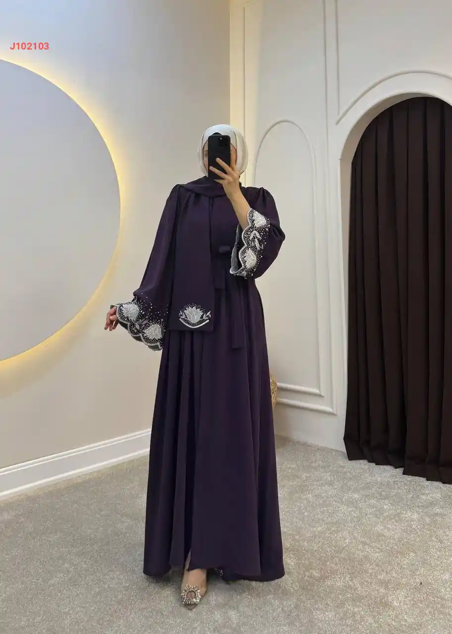 طقم عباية مع فستان سادة بأكم...