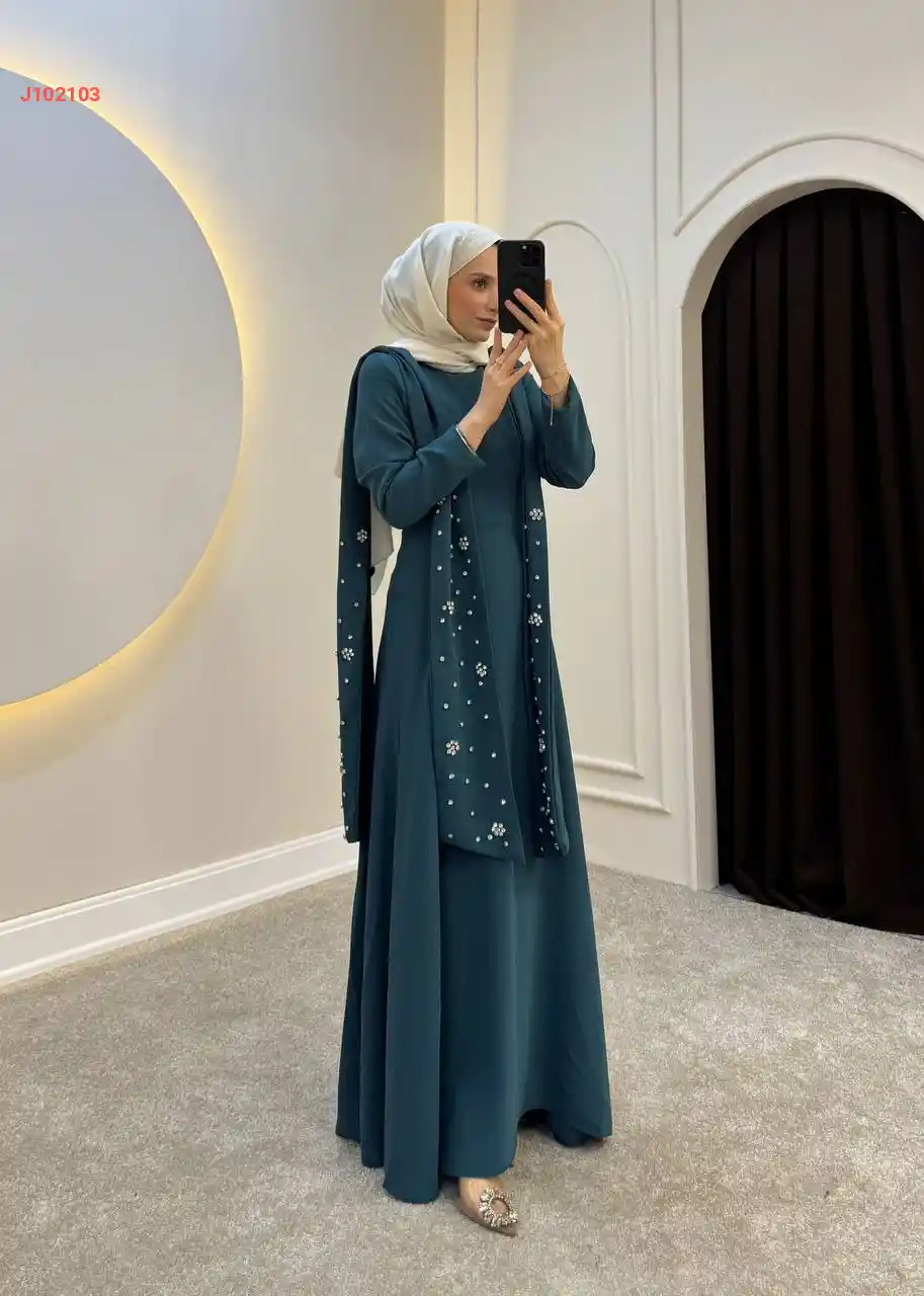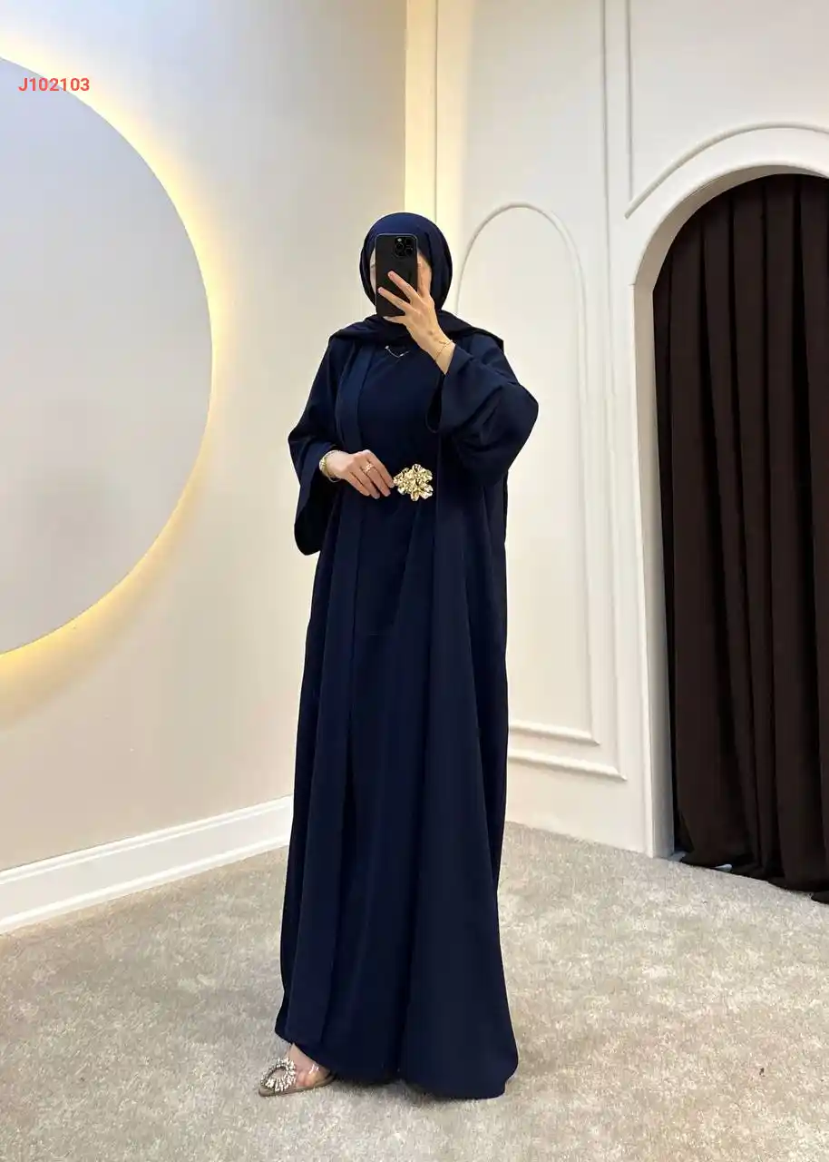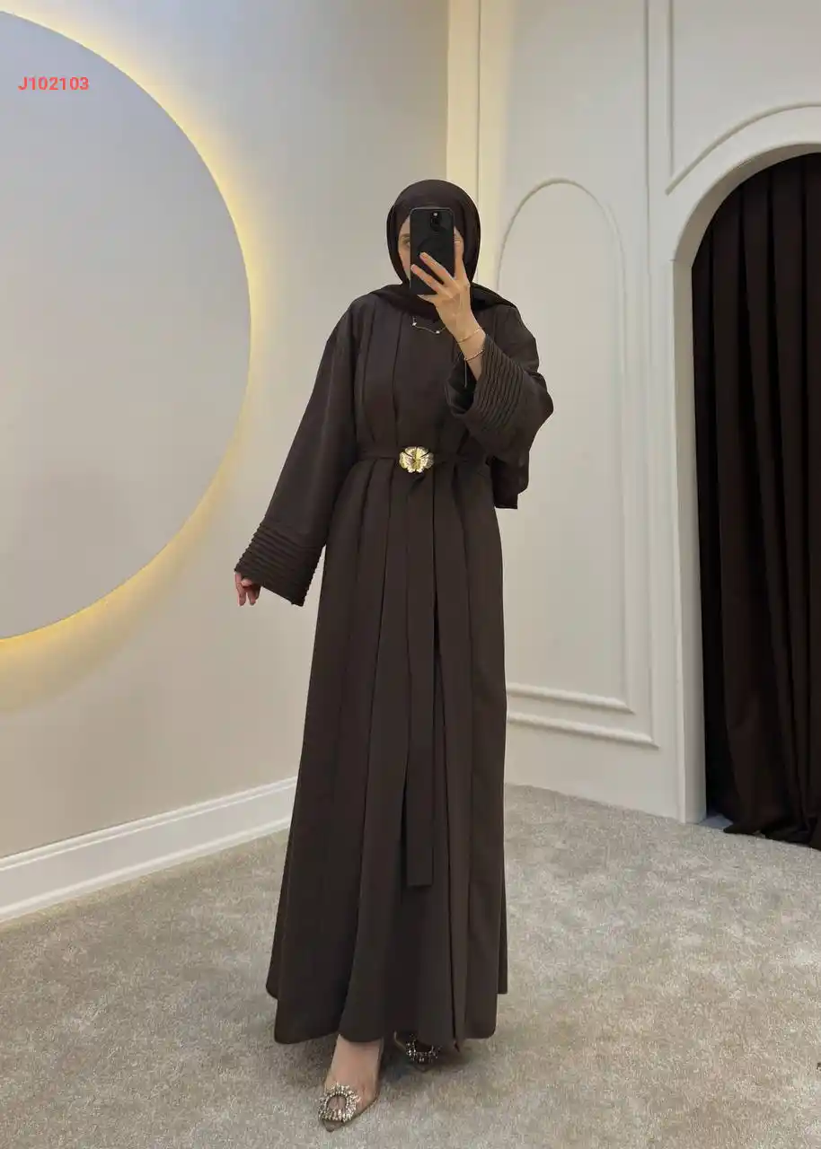 طقم عباية مع فستان سادة وحزا...