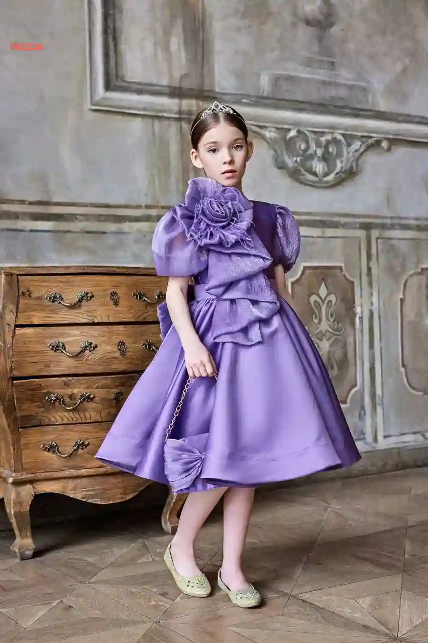فستان بناتي ببروش وردة وريش