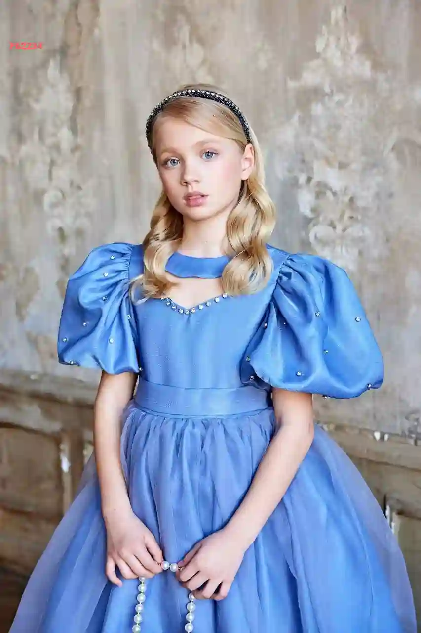 فستان بناتي مزين أحجار بأكما...