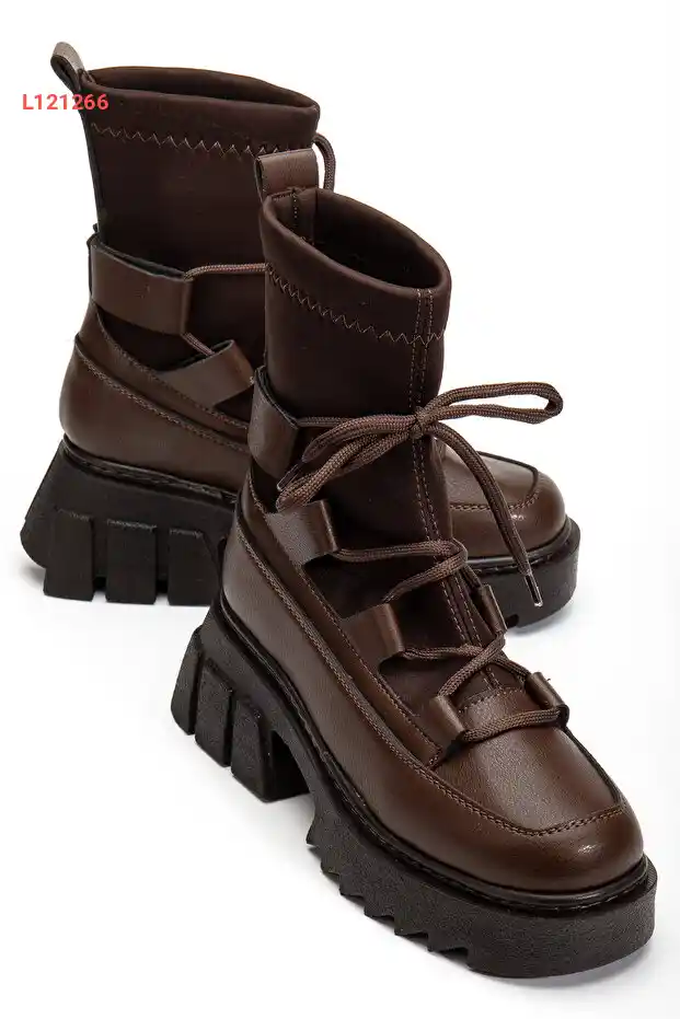 بوت شتوي نسائي جلد بني من لو...