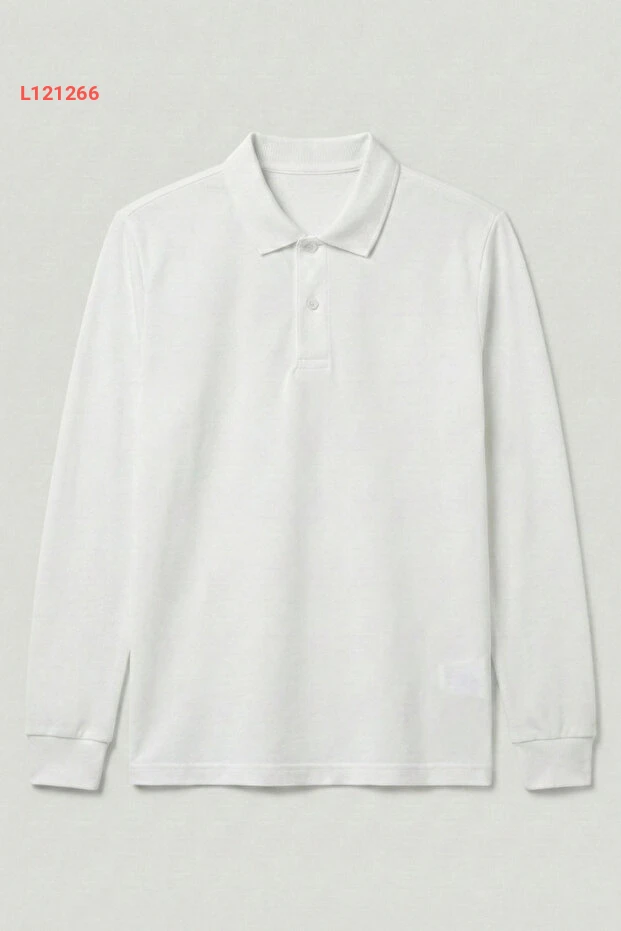 تيشيرت بولو أبيض 100% قطن بأكمام طويلة للاستخدام اليومي والمدرسي