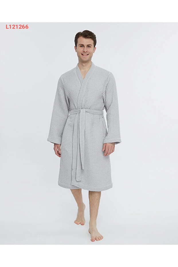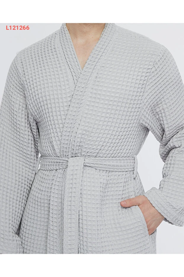 روب حمام وافي مصنوعة من 100% قطن، رومانسية وناعمة على الجسم بتصميم مربعات الوافل