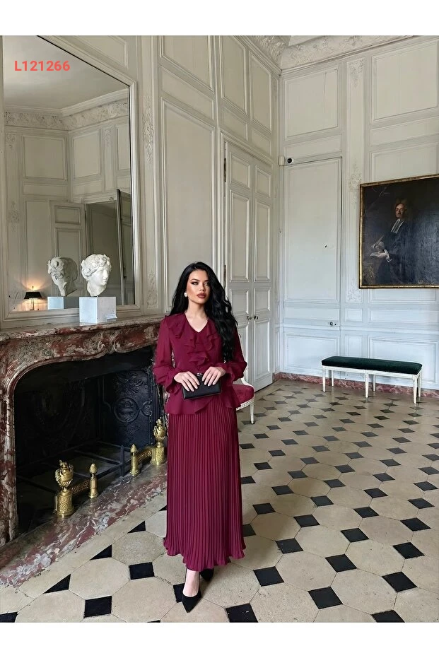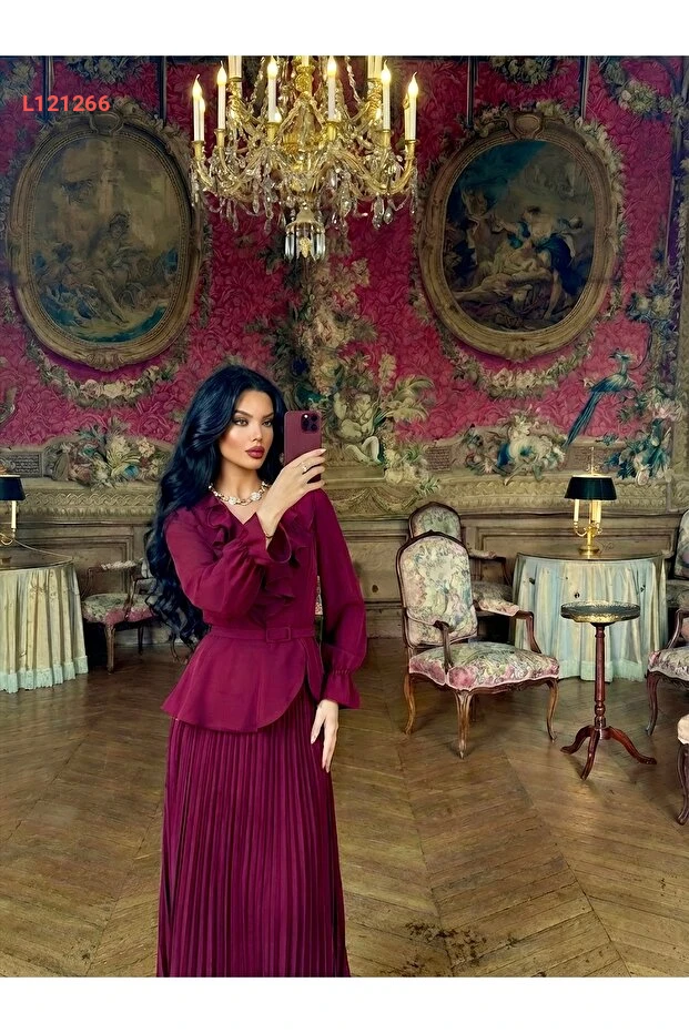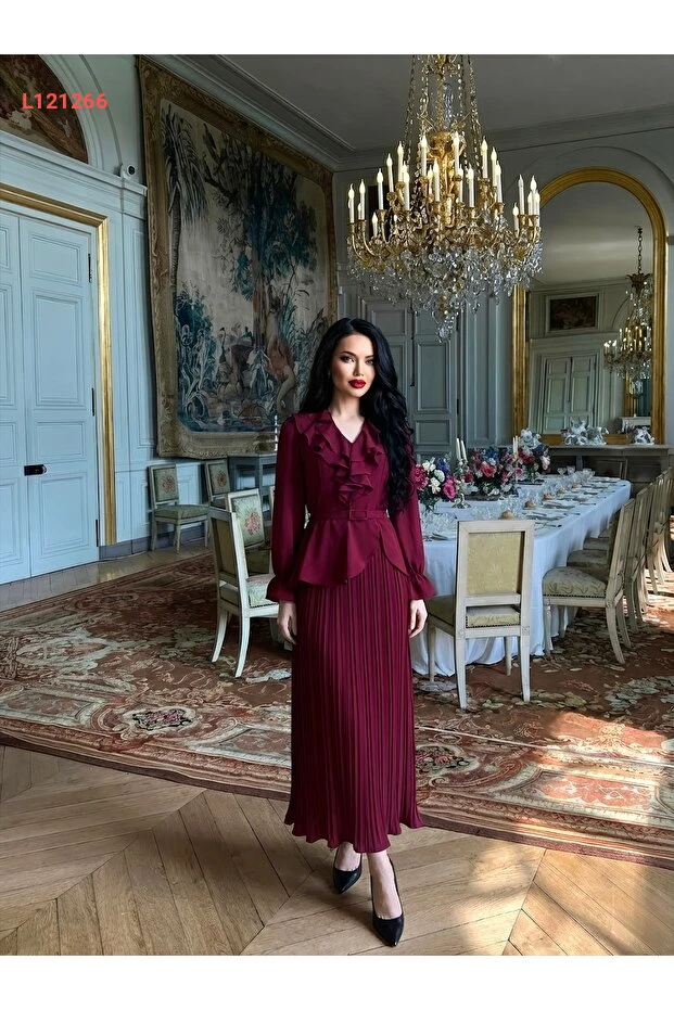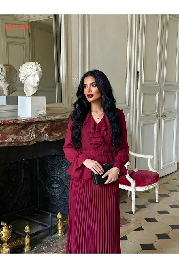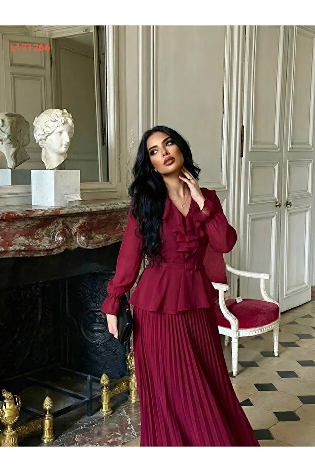 استمتعي بأناقة لا مثيل لها مع فستان 1Moda1Tarz المصنوع من قماش الكريب المستورد، الذي يجمع بين الفخامة والراحة. تتميز تفاصيل الفستان بالفُرَف ووجود حزام أنيق، بينما تضيف الطيات في الجزء السفلي لمسة من الرقي والأنوثة، مما يجعله الخيار المثالي للمناسبات الخاصة. ارتدي هذا الفستان الفريد وأبهر الجميع بإطلالتك الساحرة!