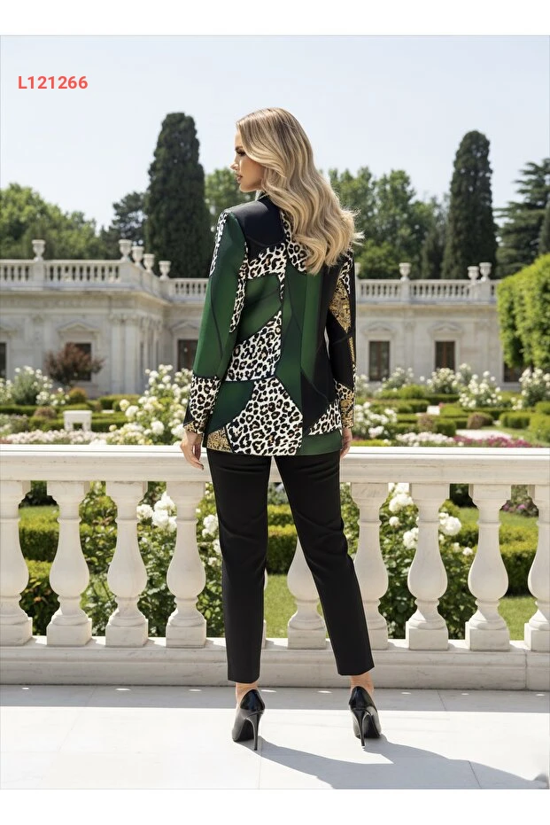 استمتع بإطلالة أنيقة مع طقم الجاكيت والبنطلون من مودا 1 تارز، المصنوع من قماش الحيوان الفاخر بتصميم الفهد مع لمسات الذهب الرائعة. يجمع هذا الطقم بين الفخامة والراحة بفضل بطانته الناعمة، مما يجعله الخيار المثالي للمناسبات الراقية أو لمسة من التميز في إطلالتك اليومية. تميز بأناقتك واجذب الأنظار مع كل خطوة!