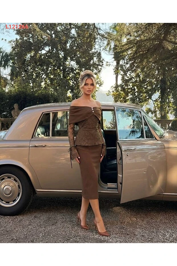 فستان الدانتيل الفاخر بأزرار وذيول رقيقة من 1Moda1Tarz
