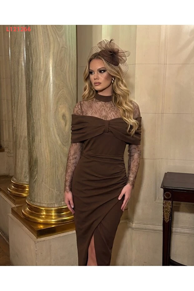 اجعل أنظار الجميع تتجه إليك مع فستان 1Moda1Tarz المستورد من قماش الكريب الرائع، المزود بتفاصيل دانتيل أنيقة وفيونكة جذابة. تصميمه الفريد مع شق جذاب وبطانة مريحة يضمن لك إطلالة ساحرة تجمع بين الأناقة والراحة في كل مناسبة.
