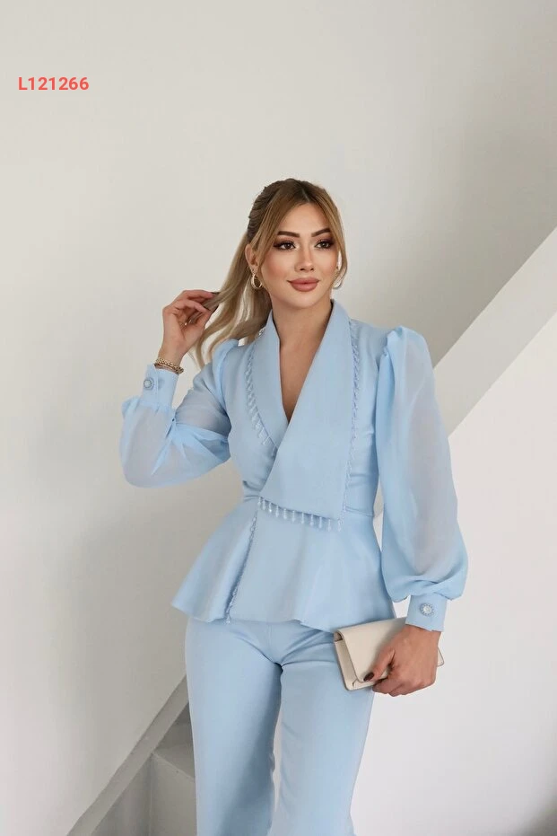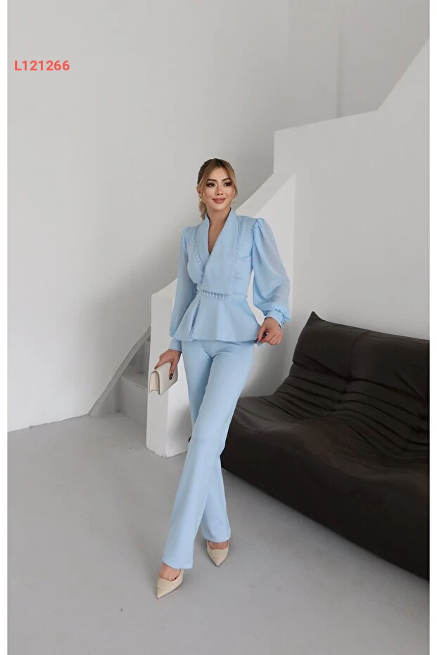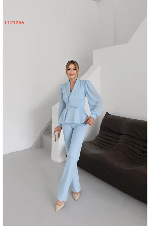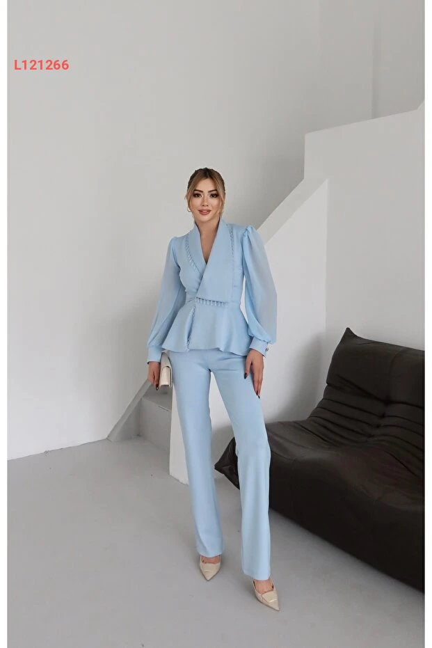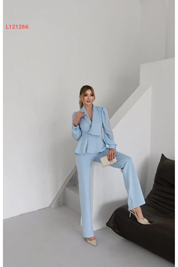 اكتشفي أناقة لا تضاهى مع طقم 1Moda1Tarz المميز، المصنوع من أقمشة مستوردة ذات جودة عالية ومرونة رائعة. يتميز بتصميمه الفاخر مع تفاصيل درزات اللؤلؤ الفريدة وأزرار الكمين، ليمنحك لمسة من الرقي في كل مناسبة. اجعلي كل نظرة تتجه إليك مع هذا الطقم المصمم للتمتع بالراحة والأناقة في آن واحد!
