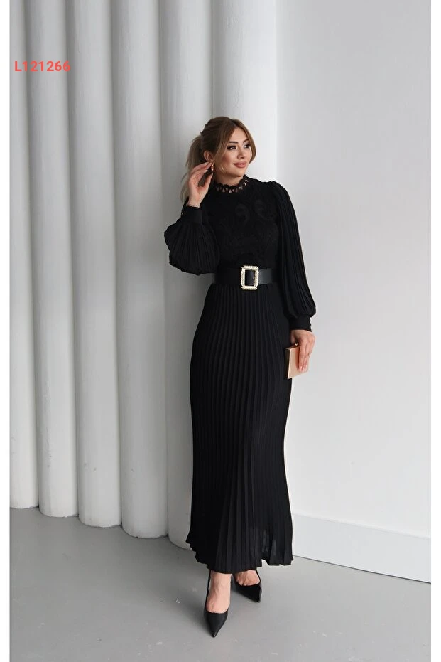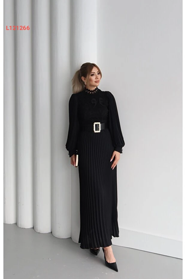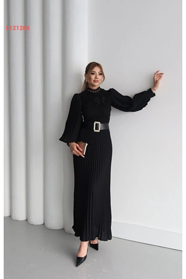 اختاري تميزك مع فستان 1Moda1Tarz المصمم خصيصاً للمرأة العصرية! يظهر هذا الفستان بتفاصيل دانتيل شفافة وأكمام شيفون أنيقة، مما يضفي لمسة من الرقي والأنوثة، بينما يضمن الطراز المنسدل والمزود بحزام تضليعاً مثيراً للخصر. مع بطانة فاخرة، يضمن لكِ راحة مطلقة وأناقة لا مثيل لها في كل مناسبة.