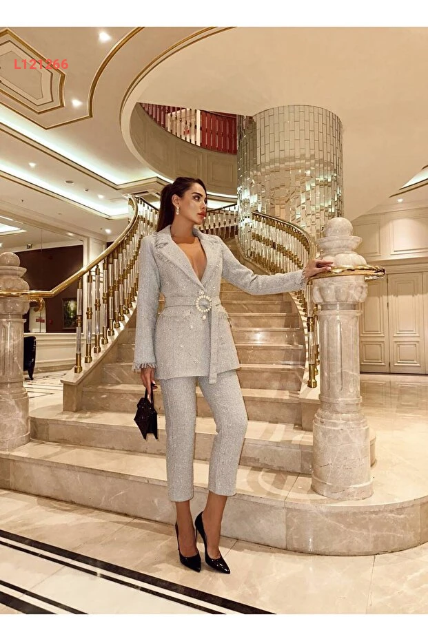 استمتعي بإطلالة ساحرة مع مجموعة 1Moda1Tarz النسائية، التي تجمع بين الأناقة والراحة بفضل قماش التويد المستورد المزود بالتفاصيل اللامعة. تتميز هذه المجموعة بحزام أنيق مع بريق وتفاصيل خرز رائعة، ما يجعلها الخيار المثالي للمناسبات الخاصة أو الخروجات العصرية. اكتشفي العصرية والأنوثة في كل تفصيلة!