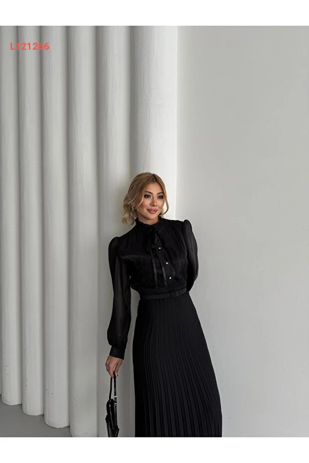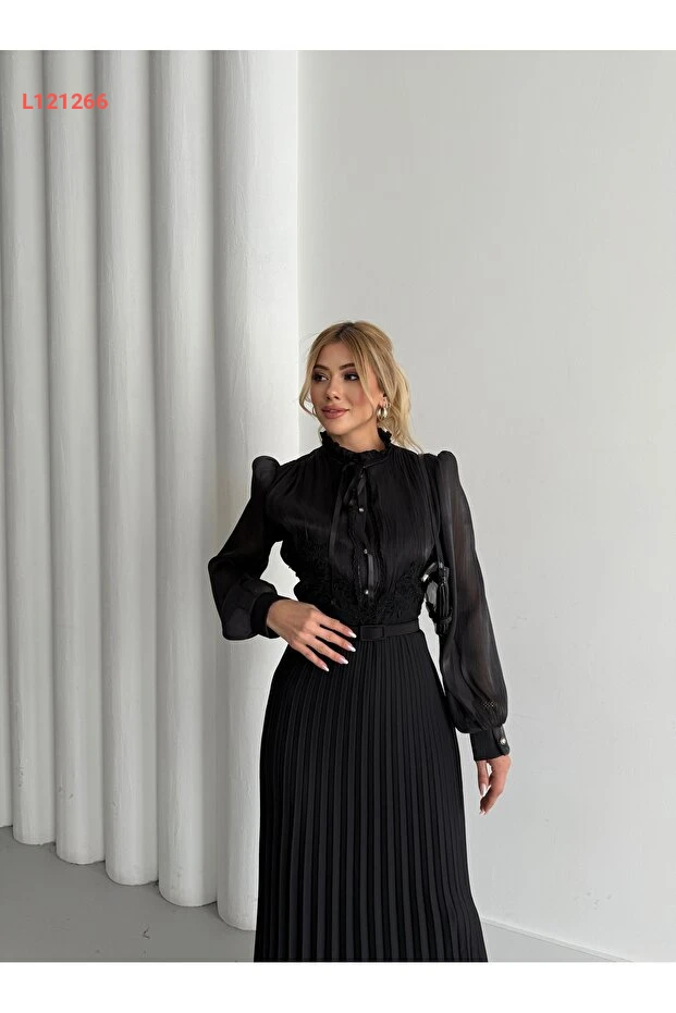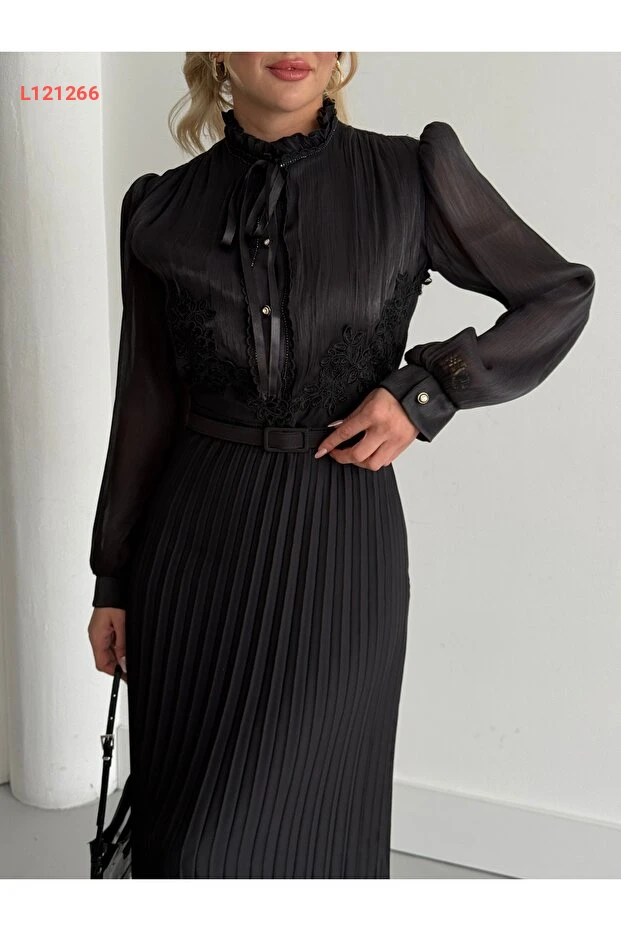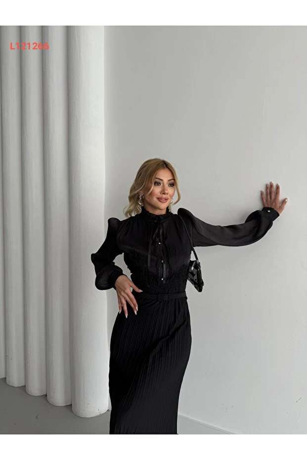 اكتشفي أناقة غير تقليدية مع فستان 1Moda1Tarz المستورد، المصنوع من الشيفون اللامع مع تفاصيل الدانتيل الرائعة. يتميز بتصميمه الفريد مع التفاصيل المبهرة والتجاعيد الأنيقة، مما يجعله خيارًا مثاليًا لمناسباتك الخاصة، حيث يجمع بين الراحة والأناقة الفائقة.