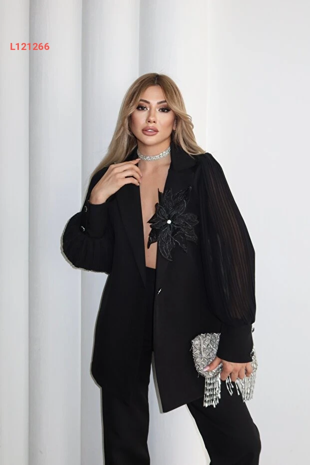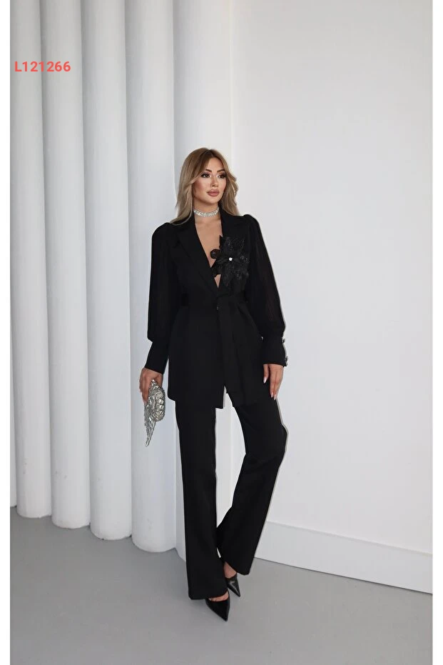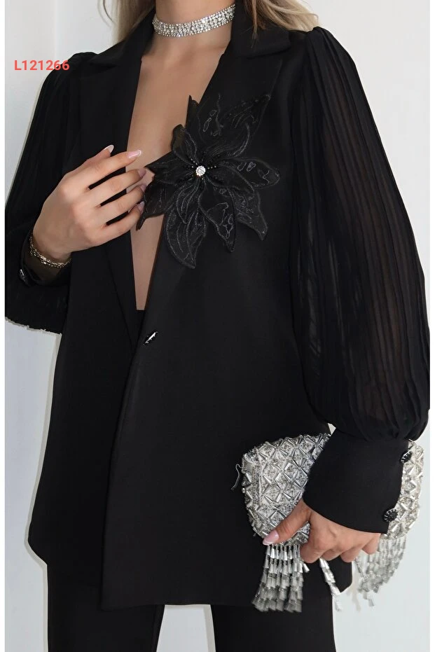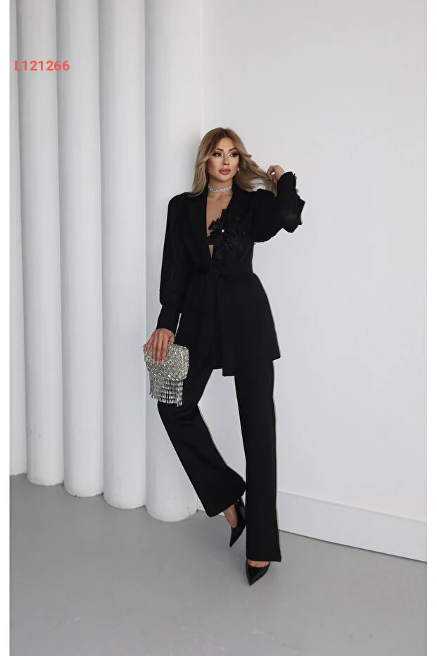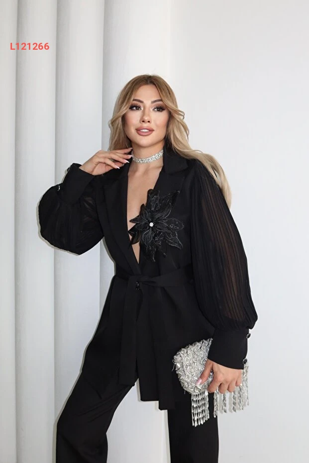 تألقي بإطلالة مميزة مع طقم 1Moda1Tarz المصنوع من قماش الأطلانتس الفاخر، حيث يجمع التصميم بين الأناقة والراحة بفضل الأكمام الشفافة والتفاصيل الرائعة بزهور الطرح. يتميز الطقم بحزام أنيق وقصاصات مثالية تبرز أنوثتك، مما يجعله الخيار المثالي للمناسبات الخاصة أو الخروجات اليومية.