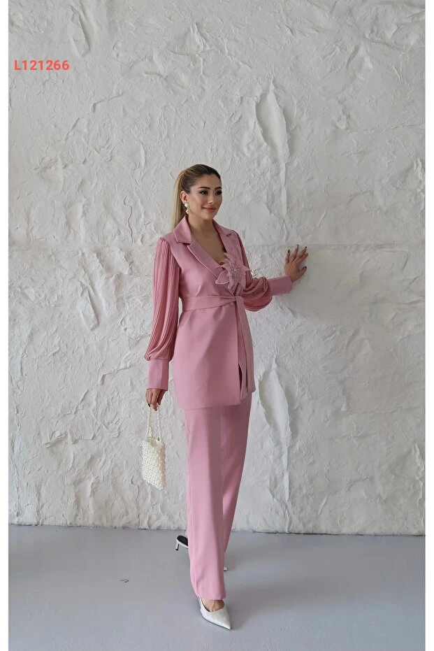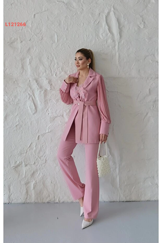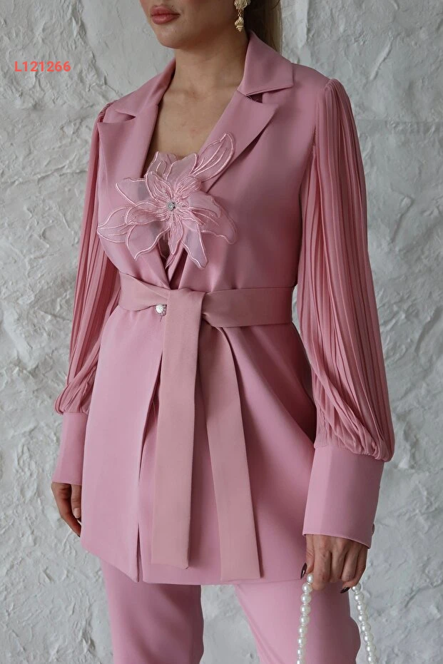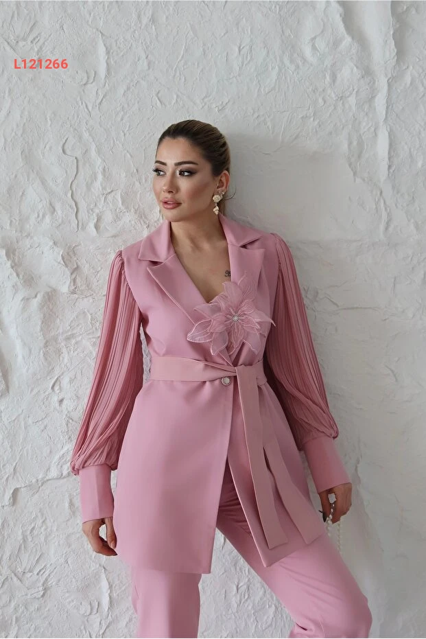 اكتشفي أناقتك مع طقم 1Moda1Tarz المُستورد، المصنوع من قماش الأطلس الفاخر، الذي يجمع بين الراحة والأناقة. يتميز بأكمام شيفون منسوجة بتفاصيل وردية أنيقة، مع تصميم مضخم من البيليسي الذي يضيف لمسة مميزة، بينما يوفر الحزام إمكانية التعديل المثالي على الخصر. اختاري هذا الطقم ليكون خيارك المفضل لمناسباتك الخاصة، حيث يجمع بين الجمال والراحة في تصميم استثنائي.