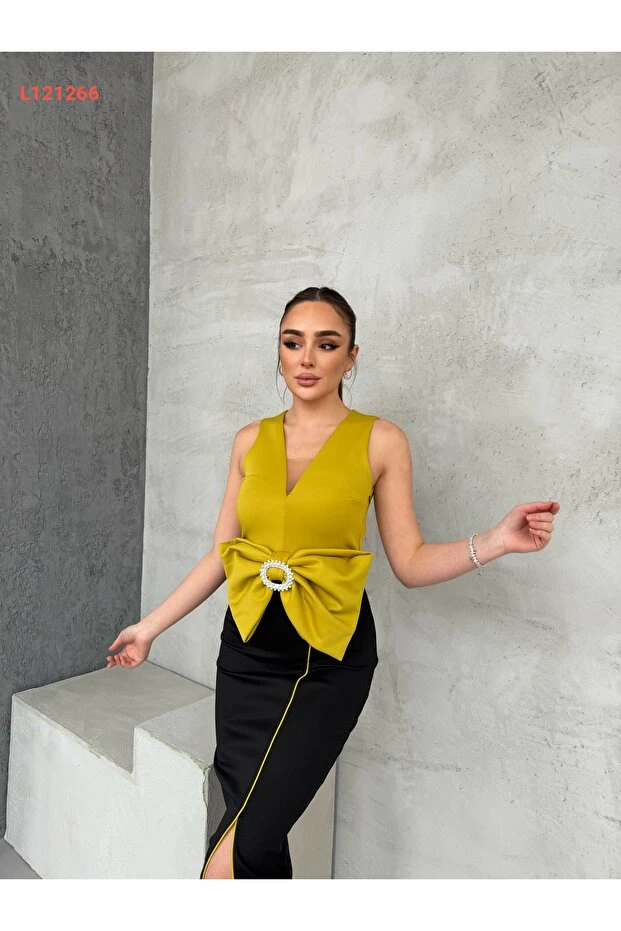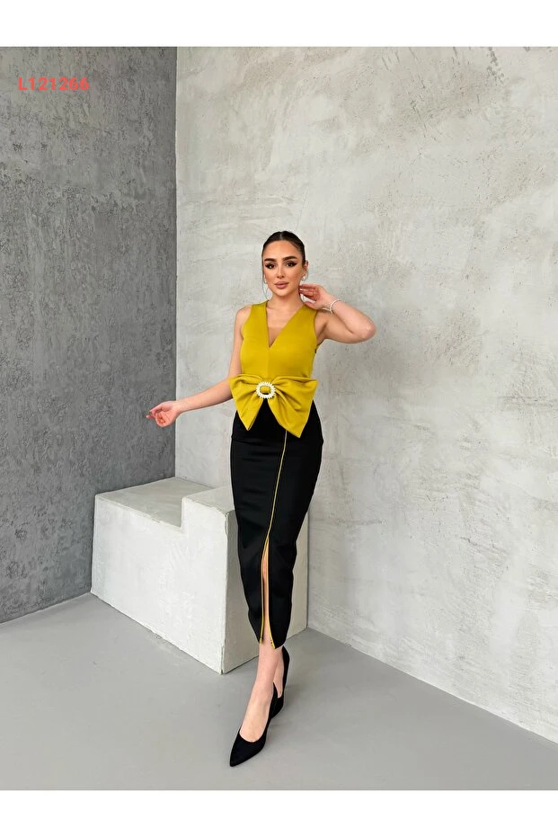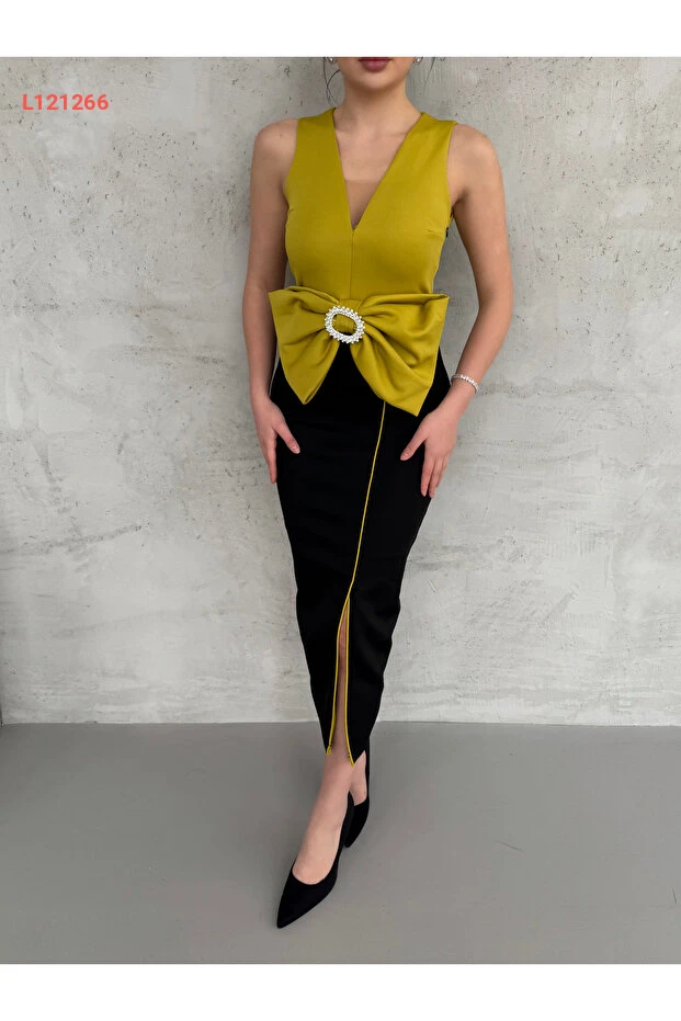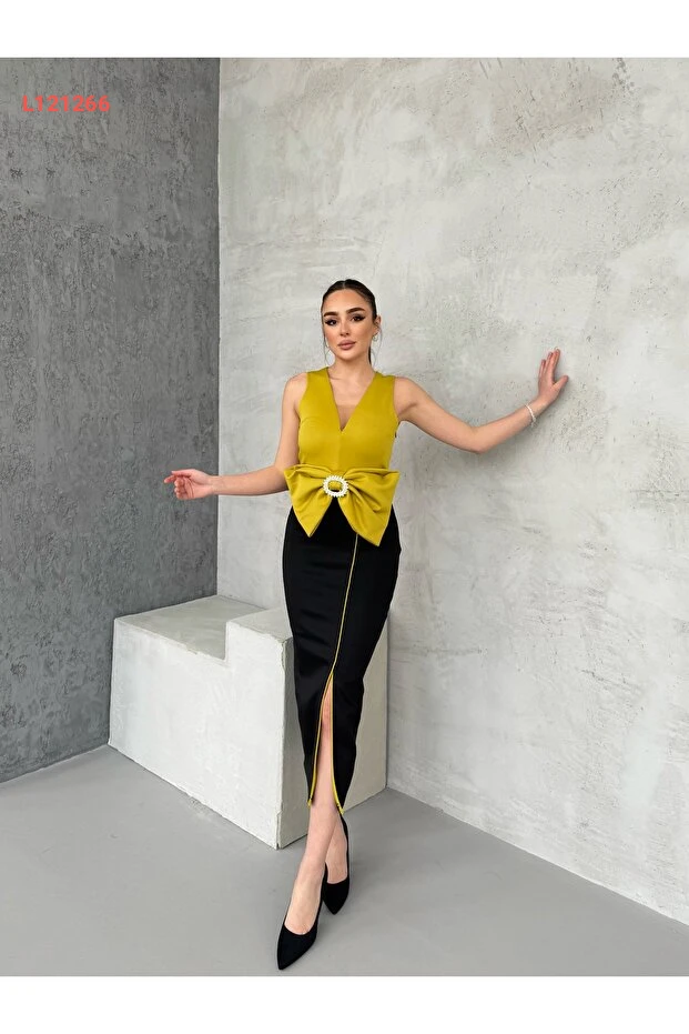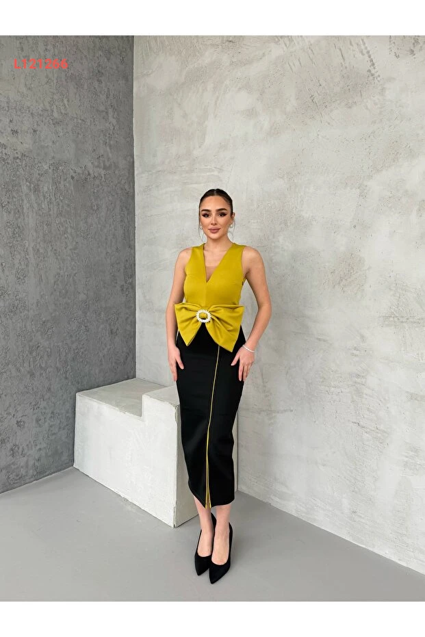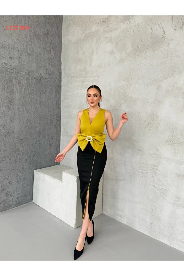استمتعي بإطلالة أنيقة ولافتة مع فستان 1Moda1Tarz، المصنوع من قماش مستورد ذو جودة عالية. يتميز بتفاصيل رibbons الرائعة وأستاره الراقية، مما يمنحك راحة لا تُضاهى وأناقة مميزة تناسب جميع المناسبات. اختاري هذا التصميم الفريد لتكوني مركز الأنظار في كل مناسبة!
