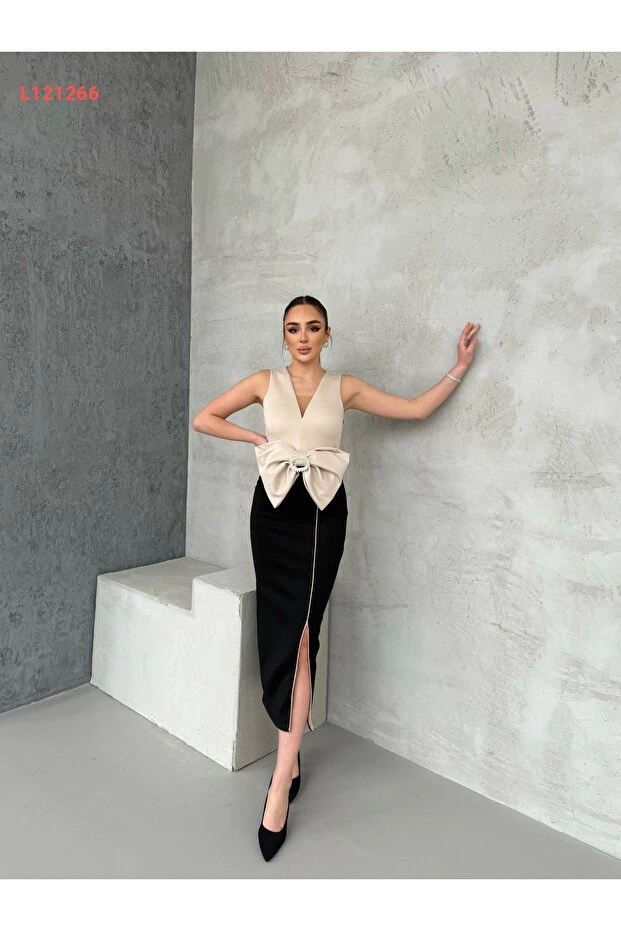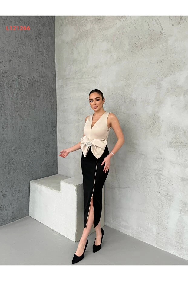 تألقي بأناقة مع فستان 1Moda1Tarz المزود بتفاصيل رائعة من الأشرطة، والذي يتميز بقصته الفريدة وتصميمه المتقن. مصنوع من قماش مستورد عالي الجودة مع بطانة مريحة، يجمع بين الراحة والأناقة ليكون خيارك المثالي لإطلالة مميزة في كل مناسبة.