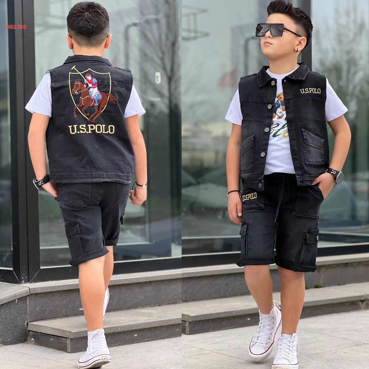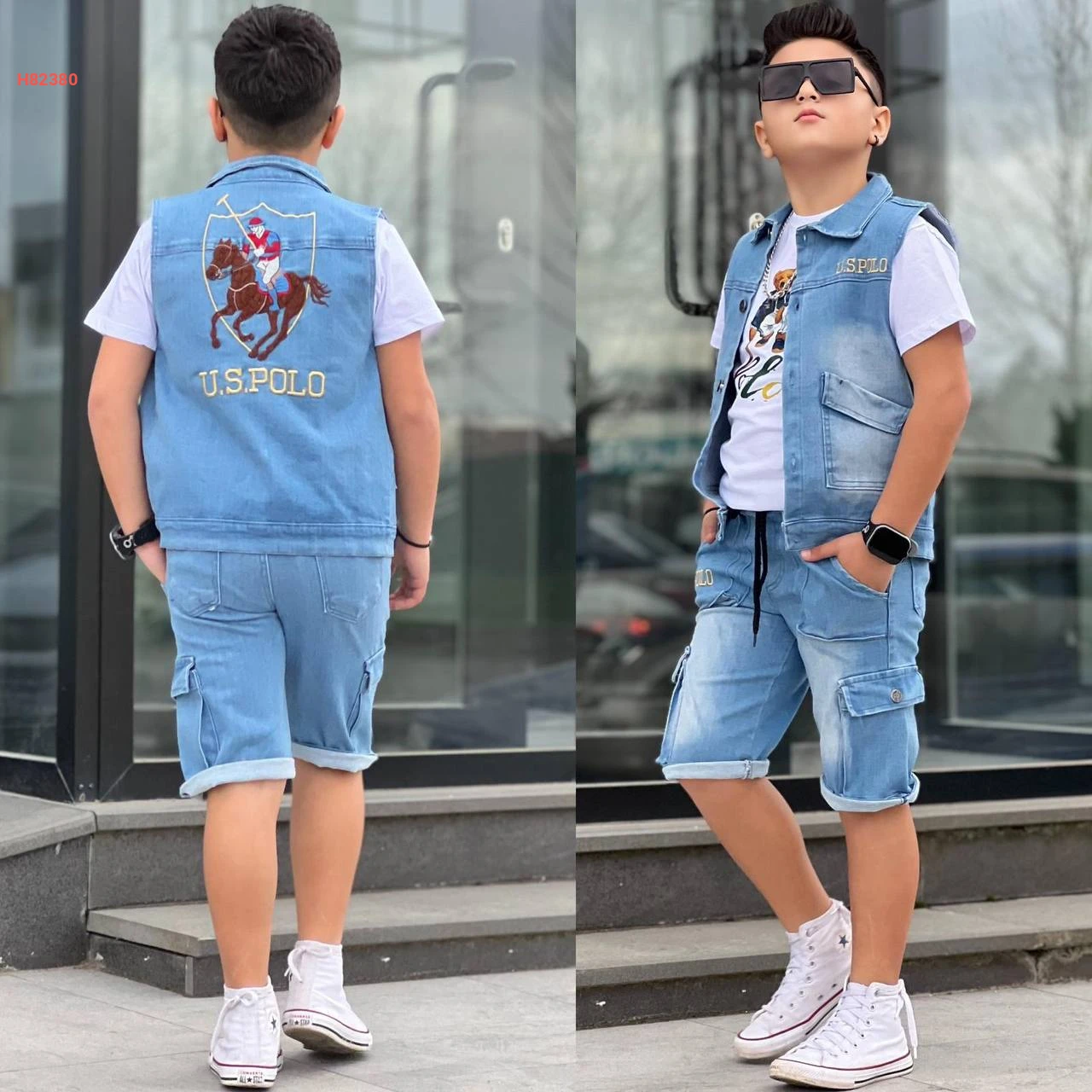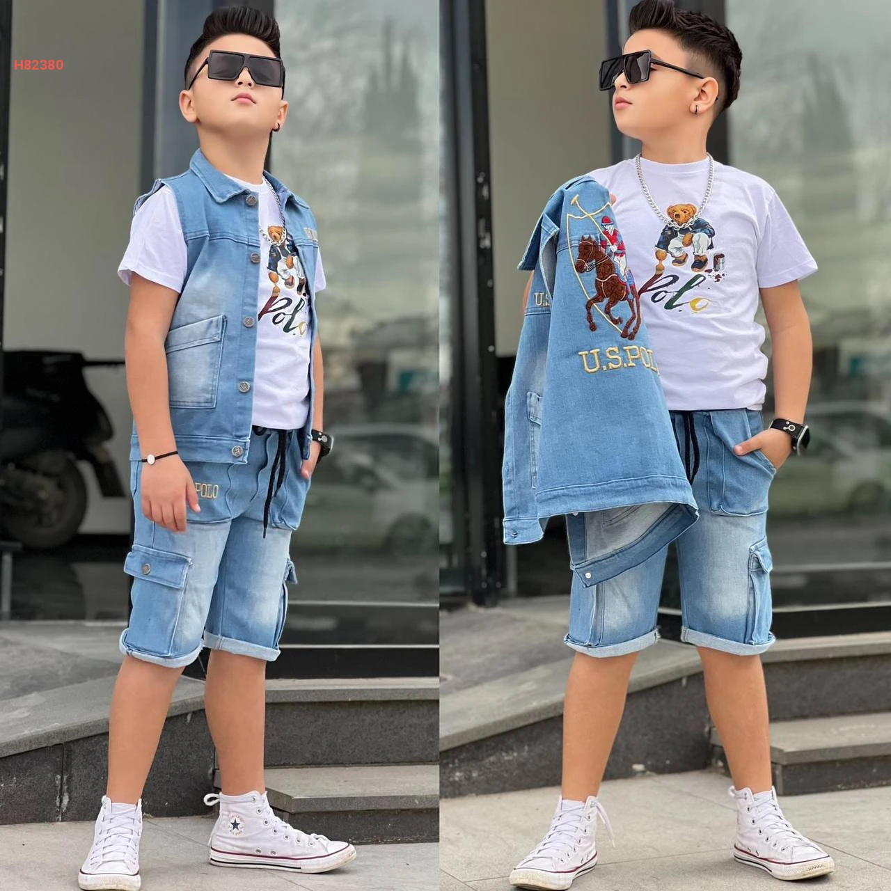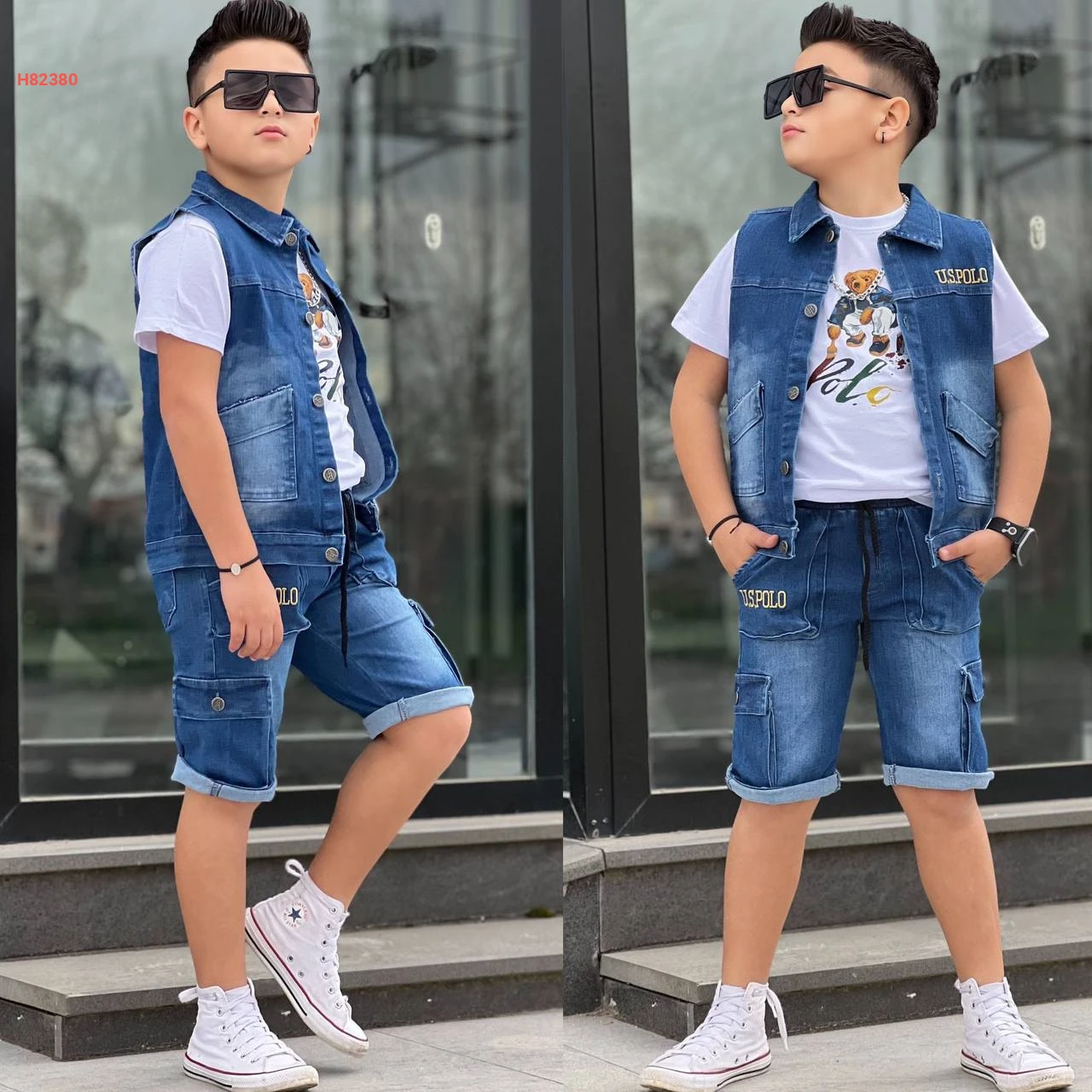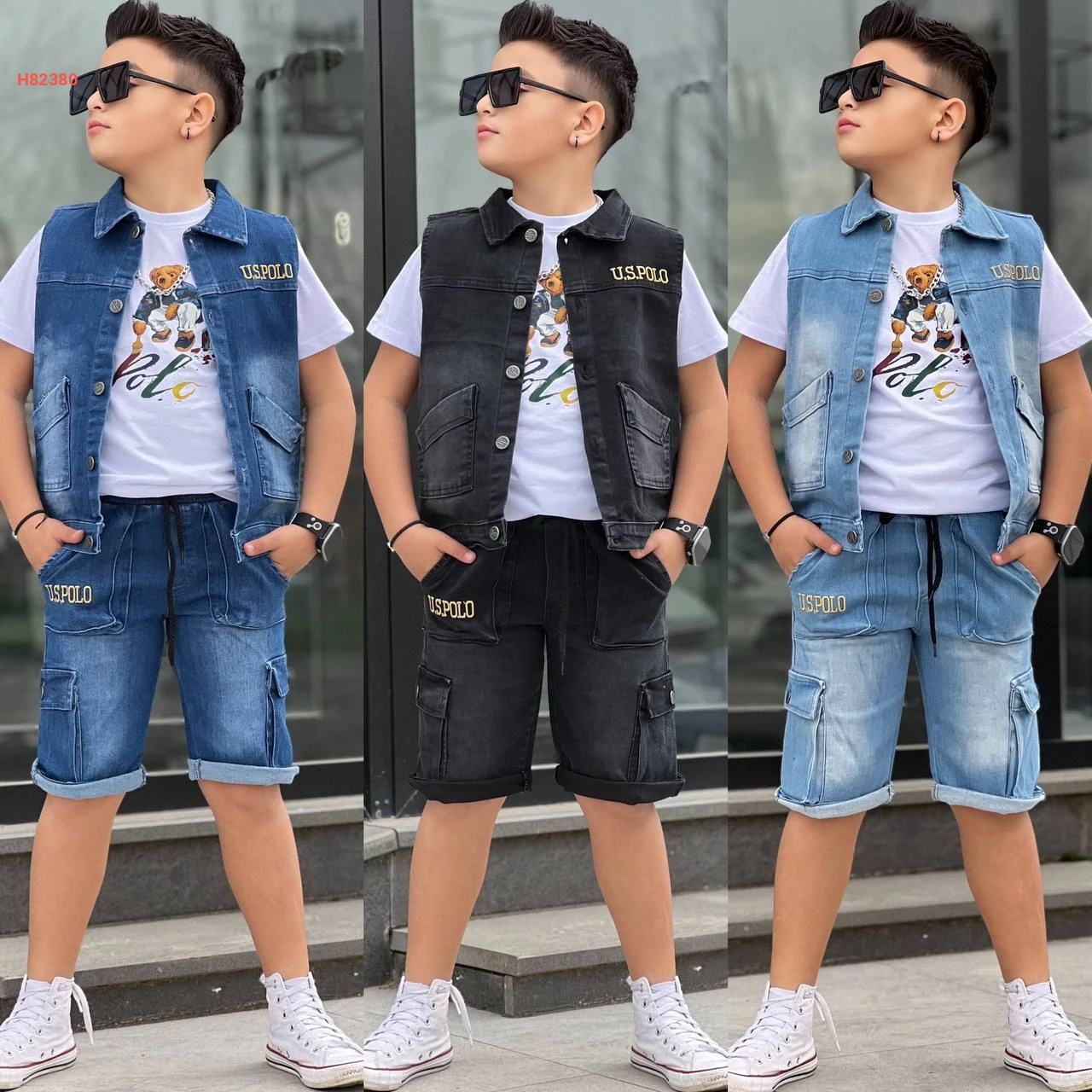 طقم شورت جينز صبياني 3 قطع ماركة