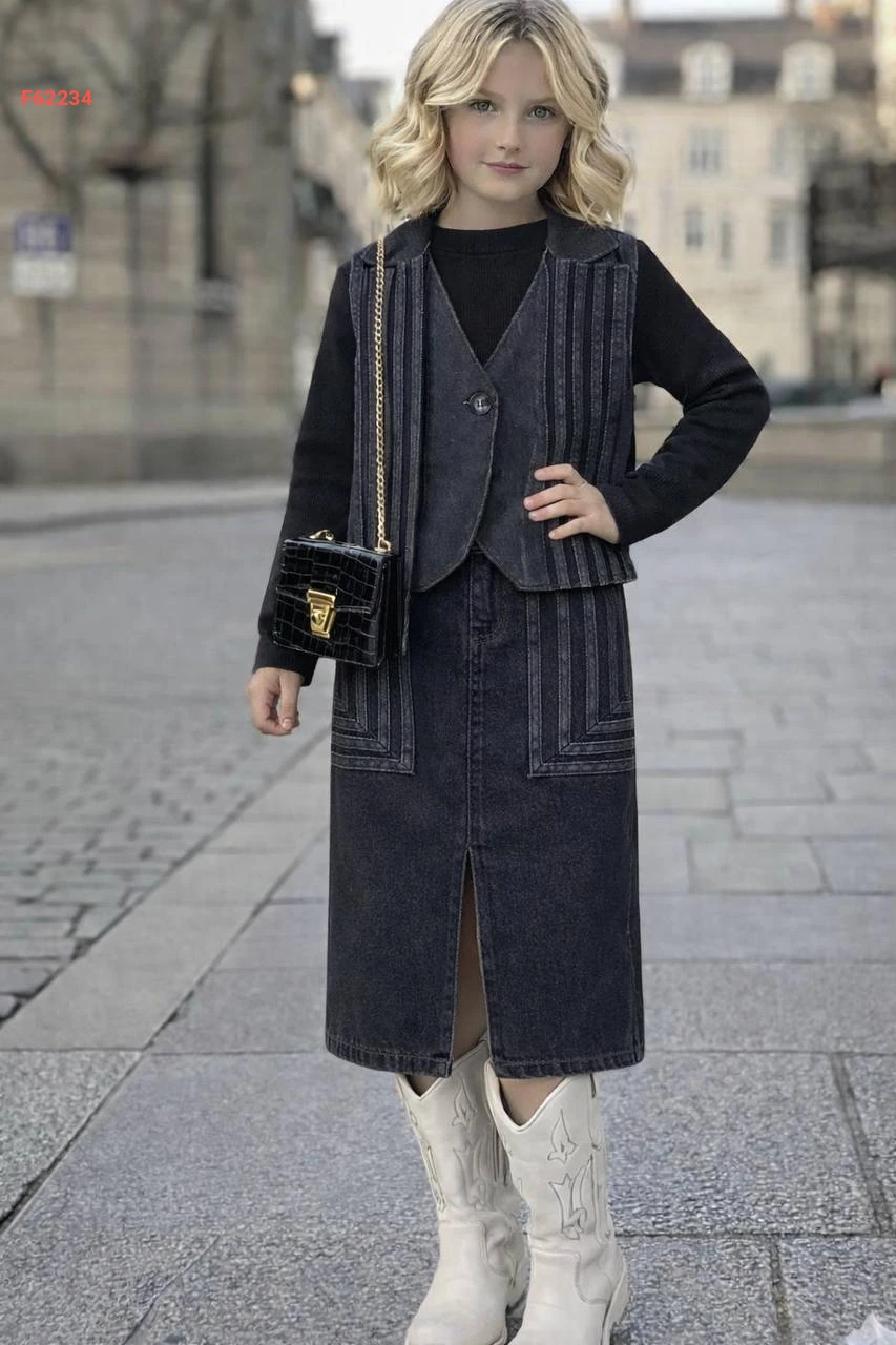 طقم تنورة جينز بناتي 3 قطع