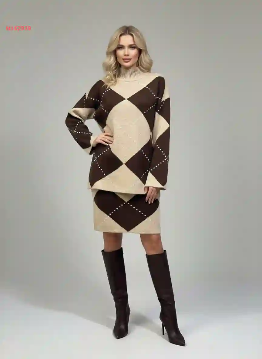 طقم كنزة قبة عالية وتنورة قص...