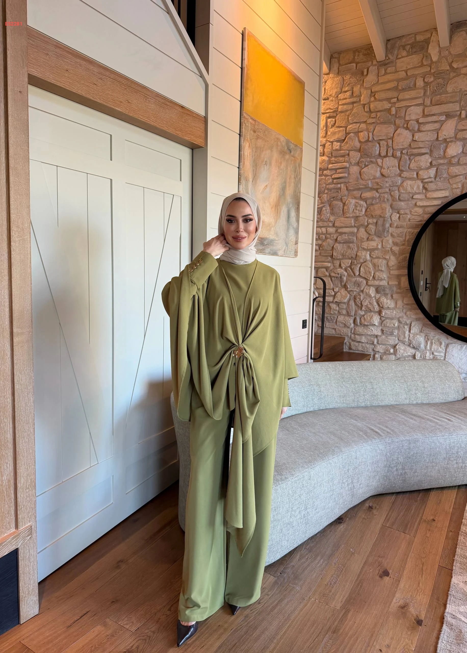 طقم بنطال 3 قطع للمحجبات ببروش