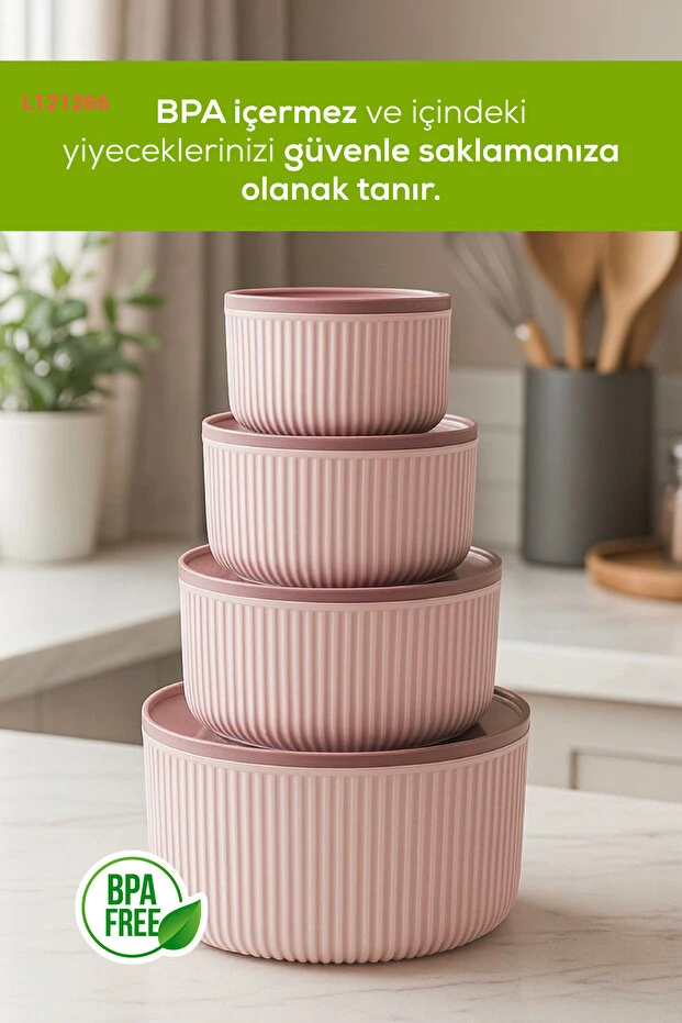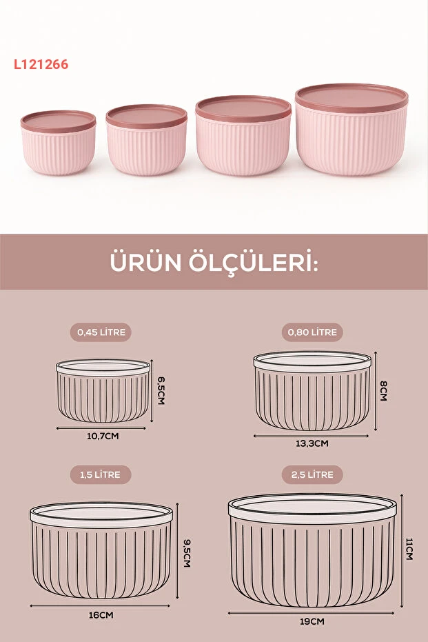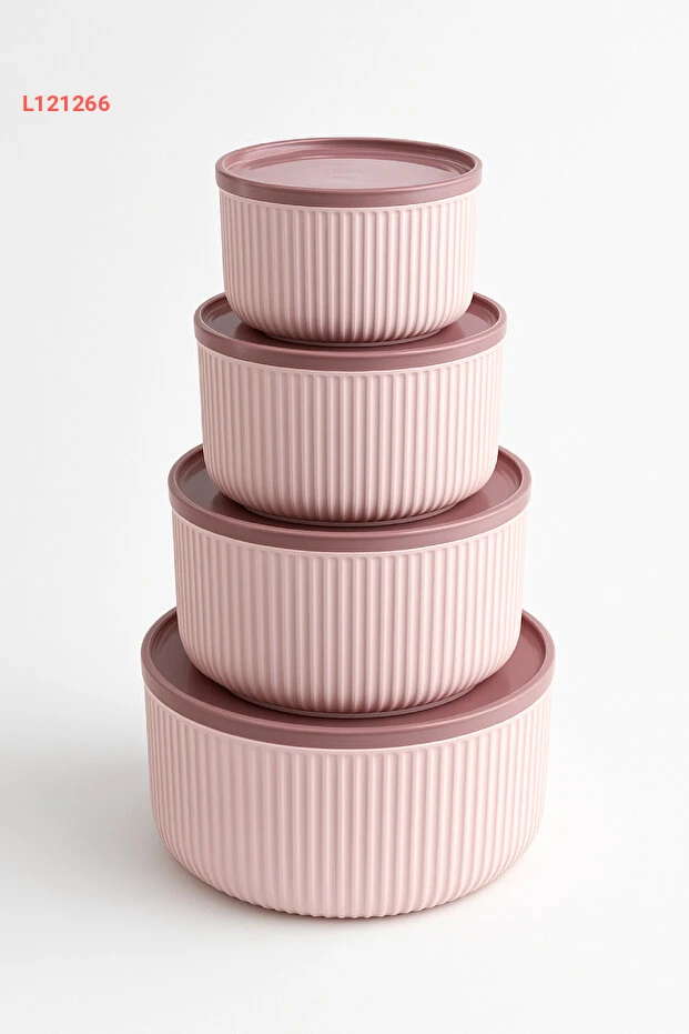 مجموعة علب تخزين دائرية 4 قطع خطية باللون الوردي | 2.5ل، 1.5ل، 0.80ل، 0.45ل | مناسبة للميكروويف والفريزر