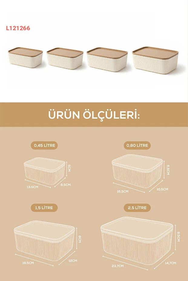 استمتع بتنظيم مطبخك مع مجموعة Vienev الرباعية من صناديق التخزين المميزة بلون البيج الأنيق. تأتي المجموعة بسعات متنوعة (2.5 لتر، 1.5 لتر، 0.80 لتر، 0.45 لتر) لتلبية جميع احتياجات التخزين، كما أنها مصممة لتحمل الاستخدام في الميكروويف والفريزر، مما يجعلها الخيار المثالي لحفظ الطعام بشكل آمن ومرتّب. اجعل من تجربة الطهي والتخزين أكثر سهولة وأناقة مع هذه المجموعة الرائعة!