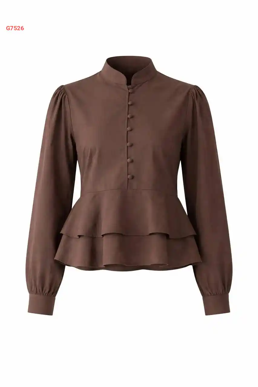 قميص تنسل بياقة واسعة وأزرار دهبي