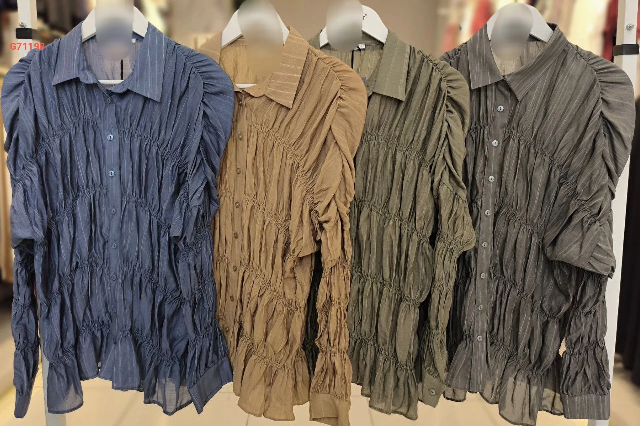 قميص شيفون مجمع بتفاصيل زم