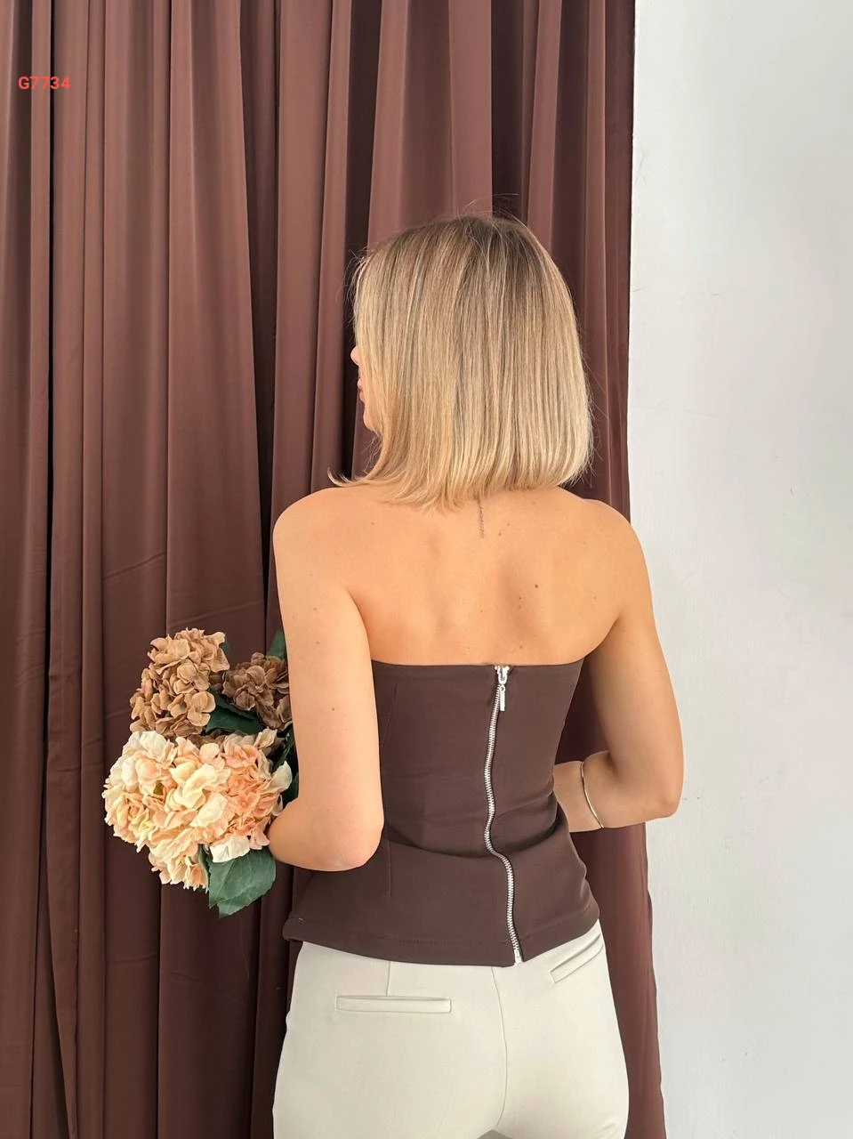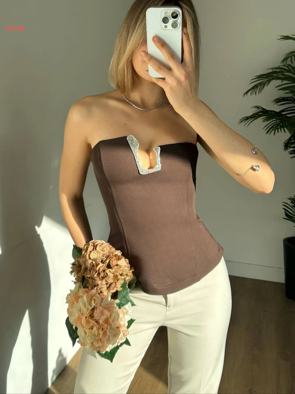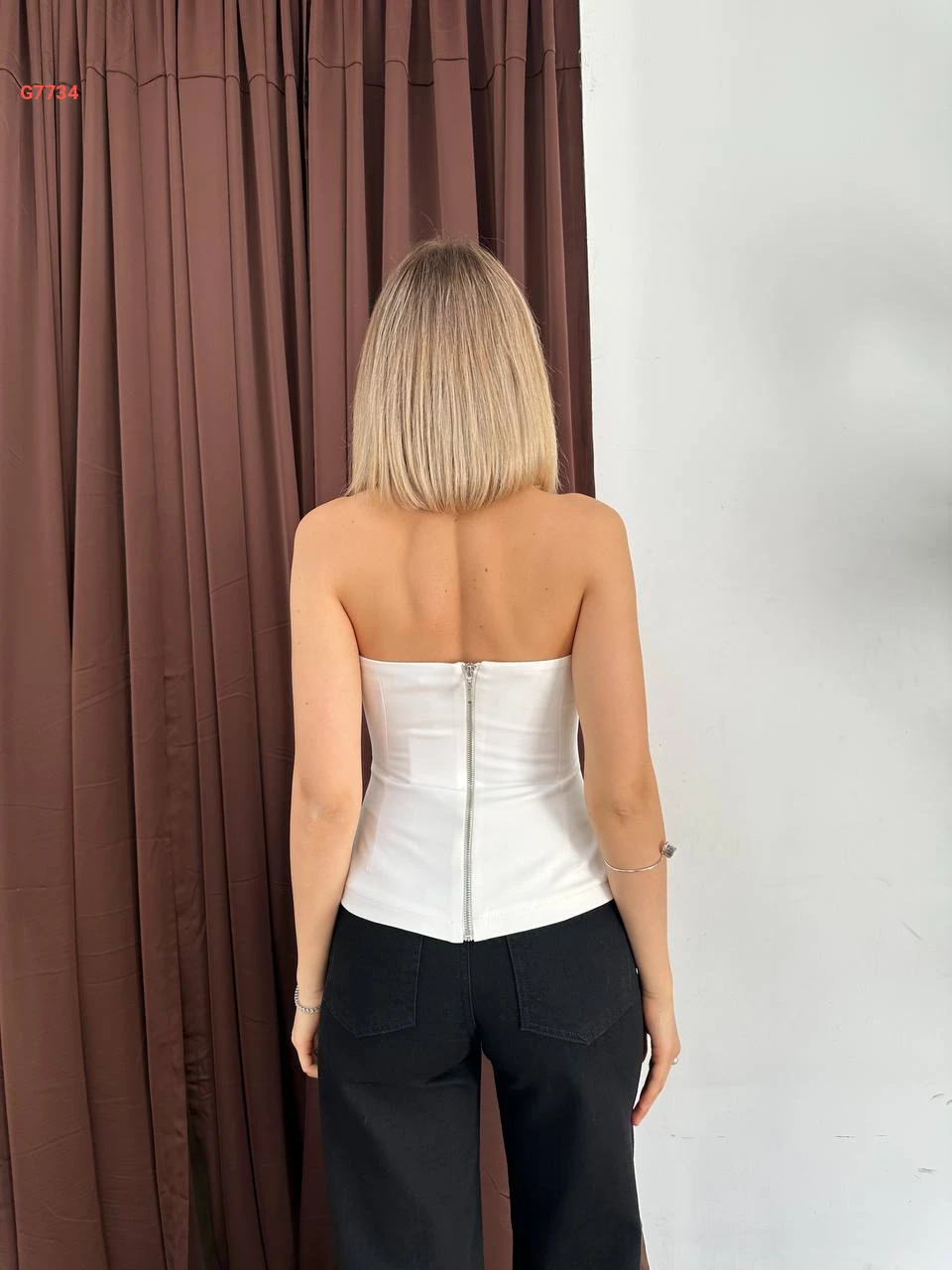 بلوزة cut بسحاب خلفي وألماس