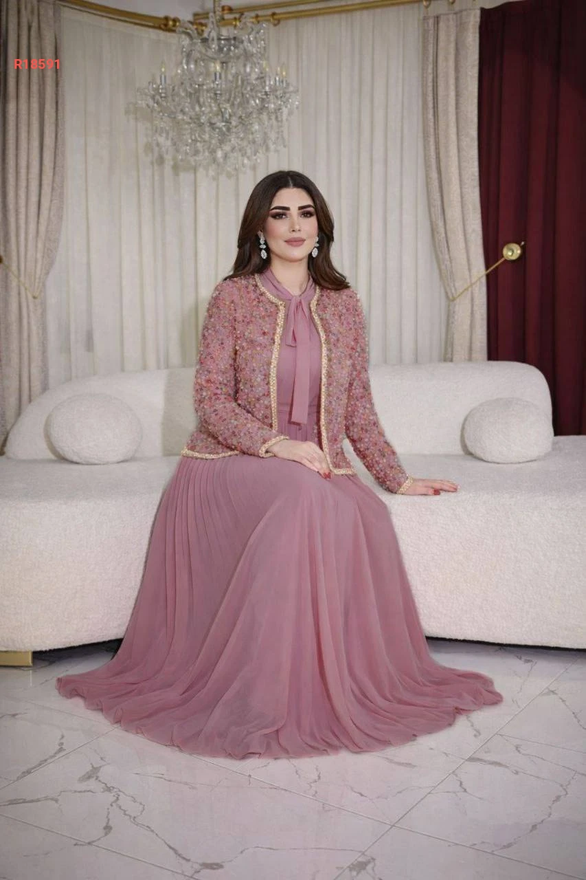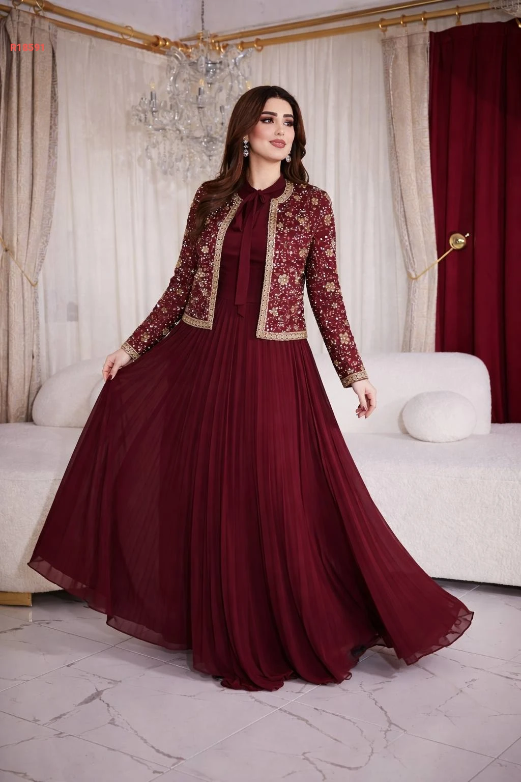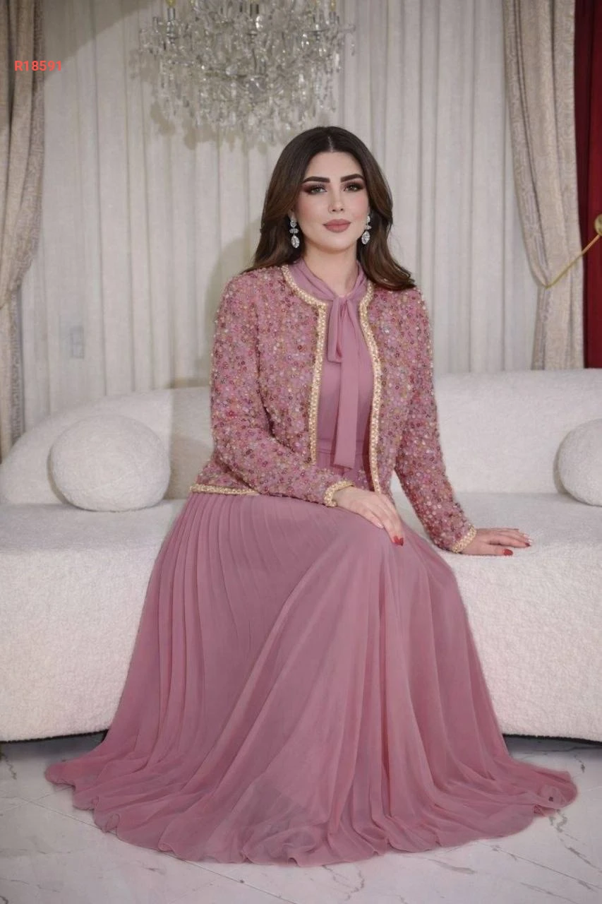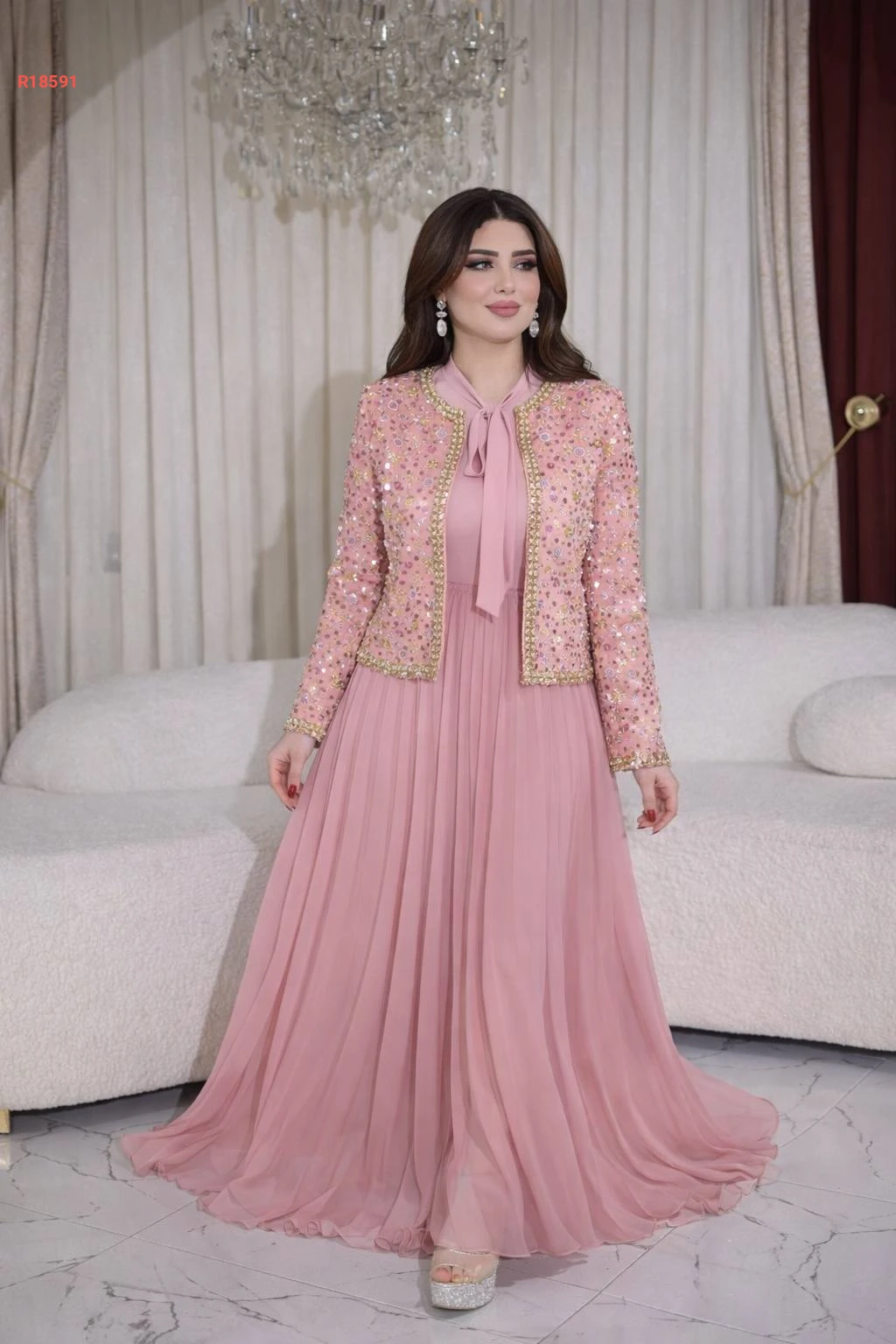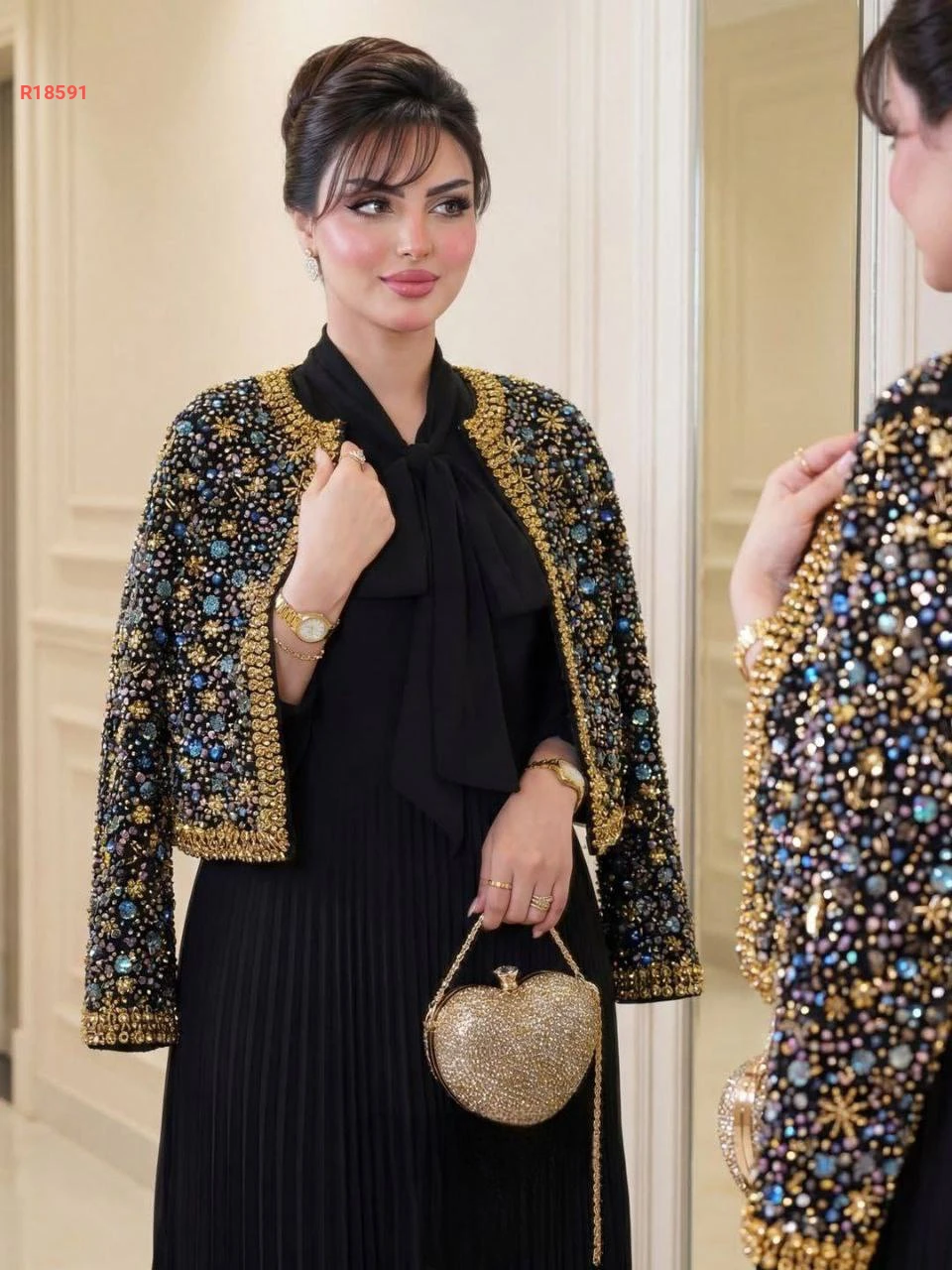 طقم فستان حفر بكسرات ناعمة مع ربطة عنق،جاكيت مرصع بالشك الذهبي والبرق