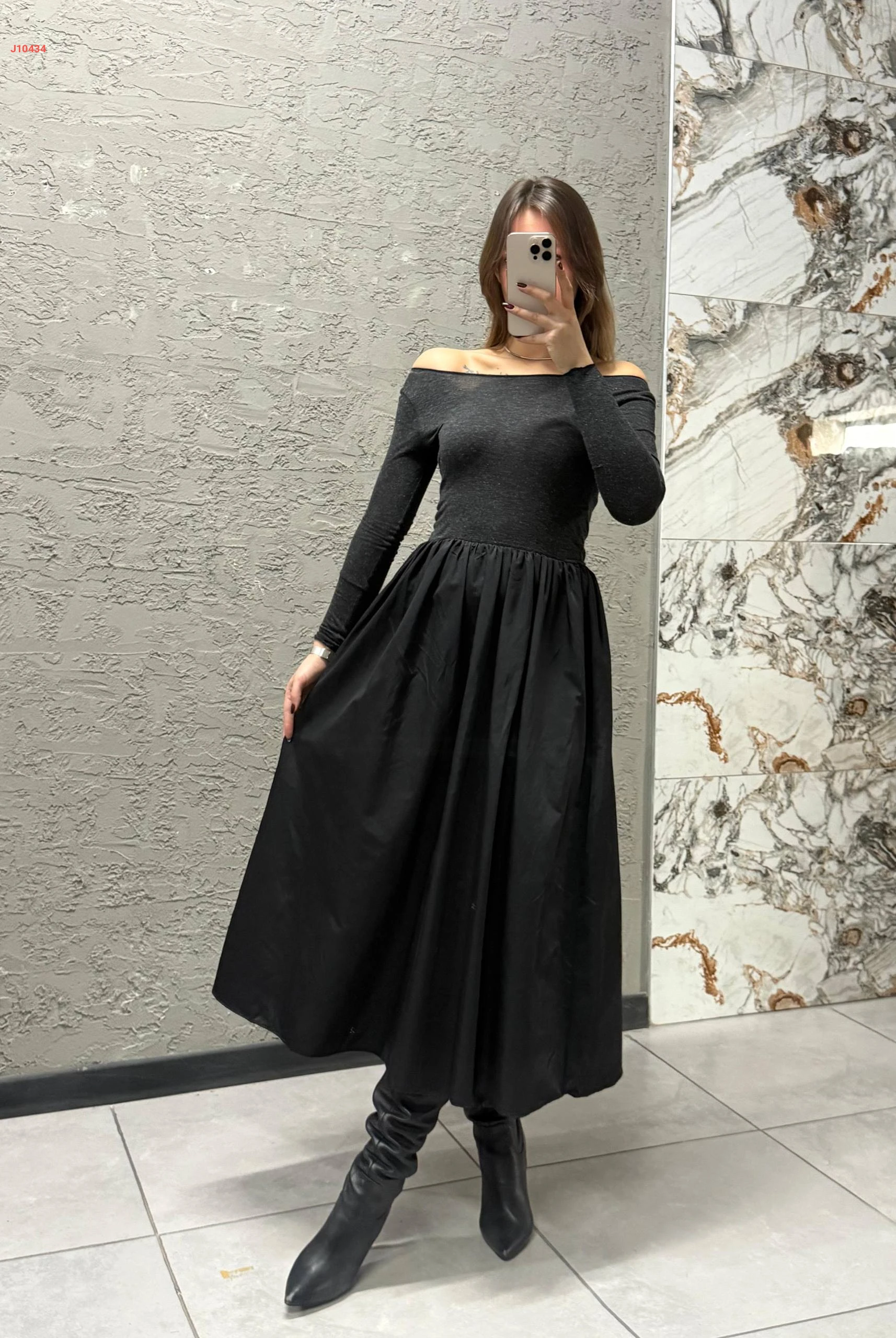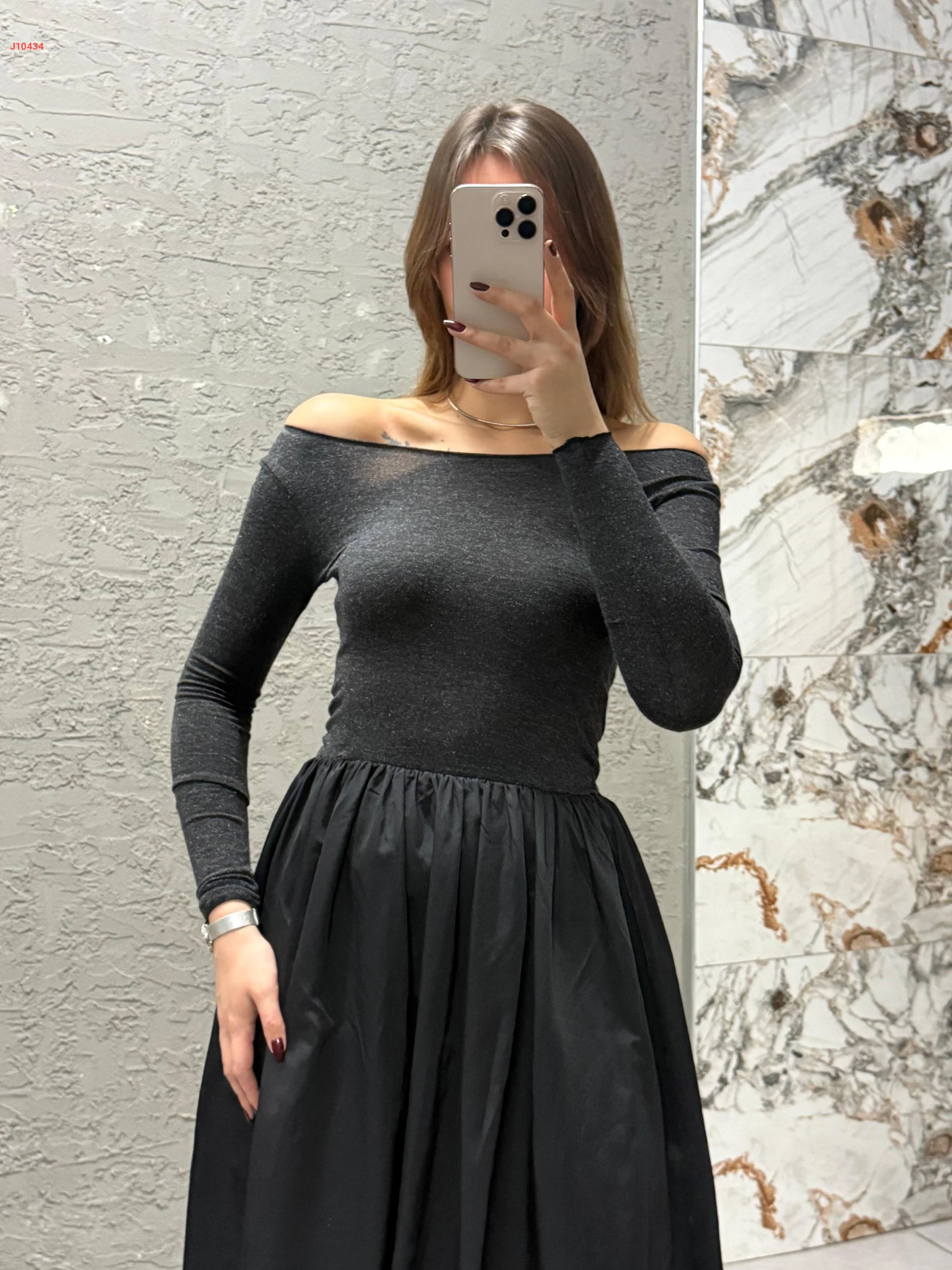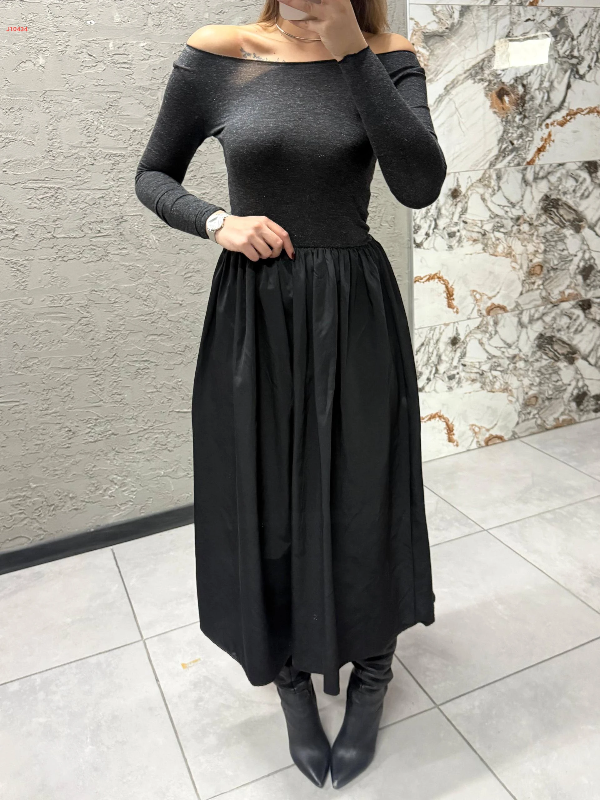 فستان كلوش ولميع بياقة مادونا