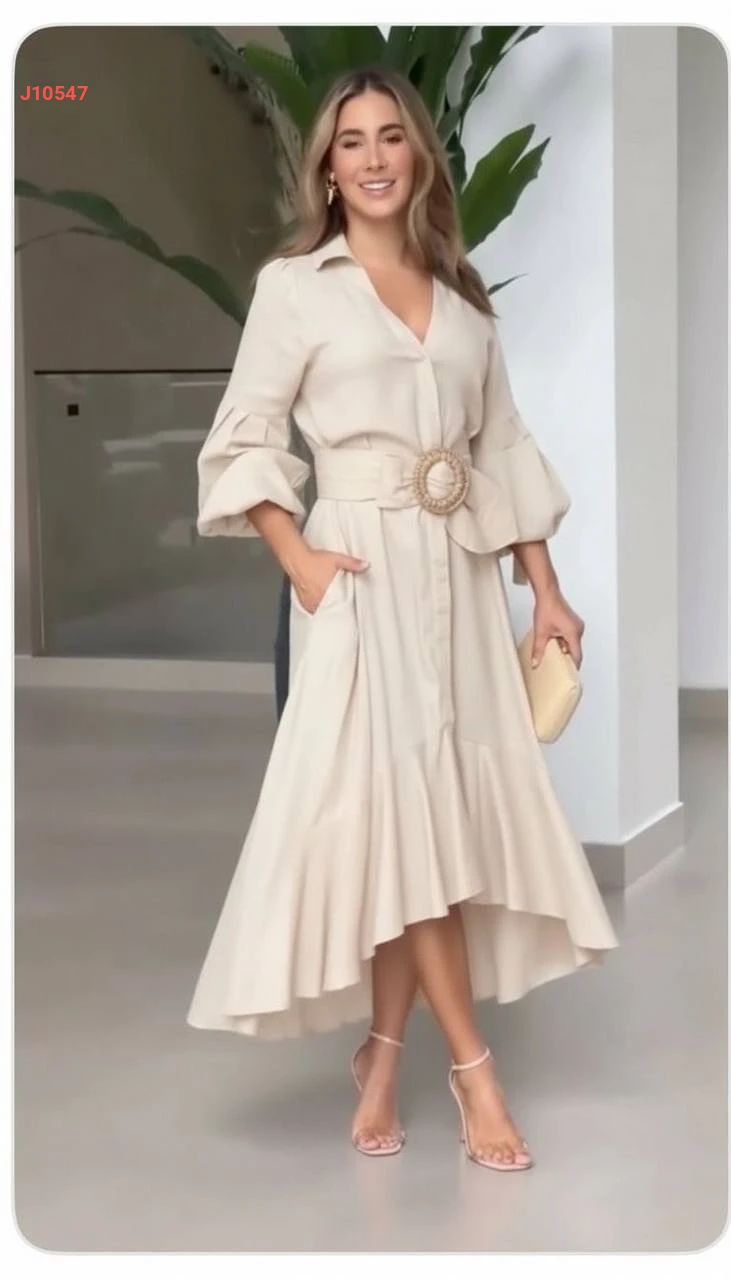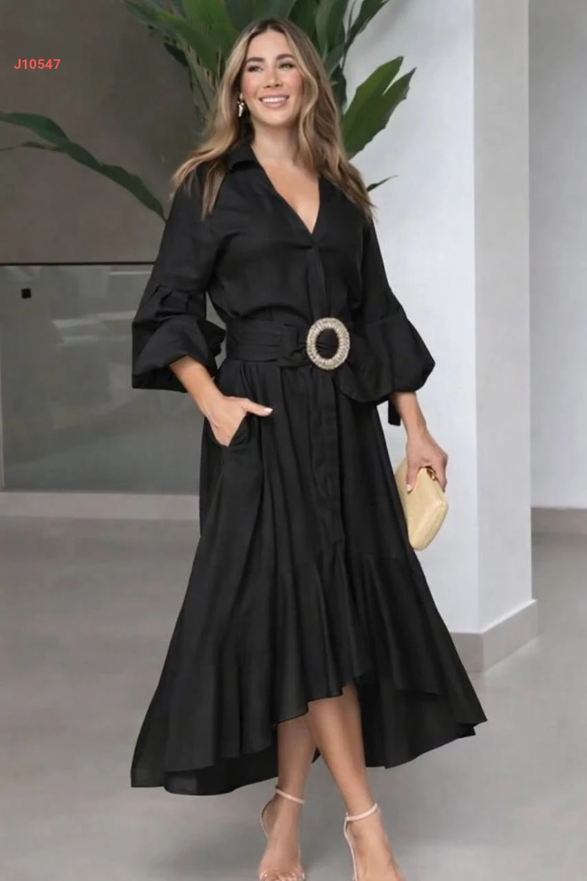 فستان كلوش بأزرار مع حزام