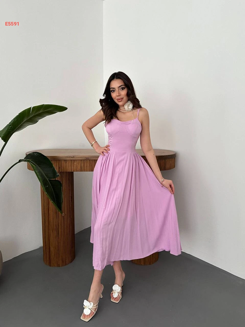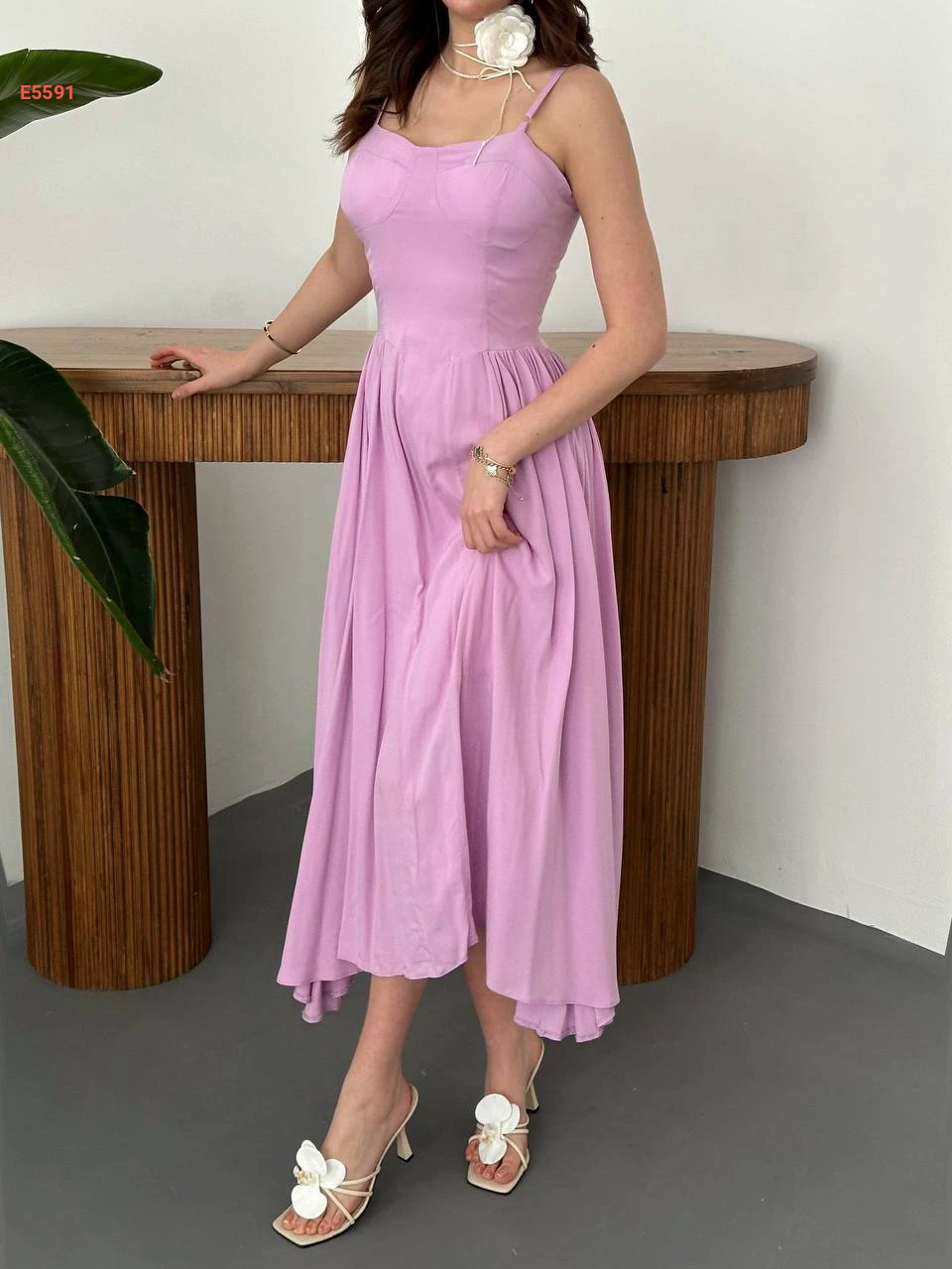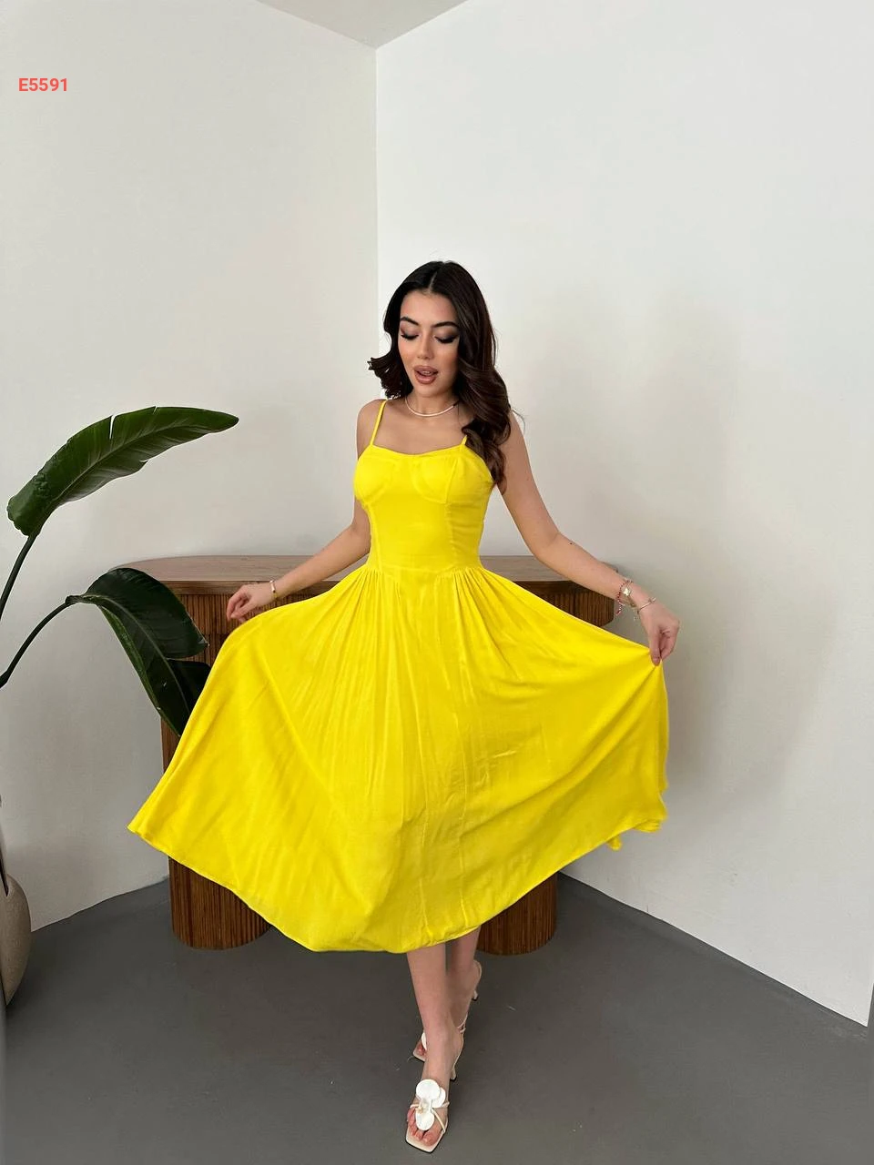 فستان صيفي كلوش بحمالات رفيعة
