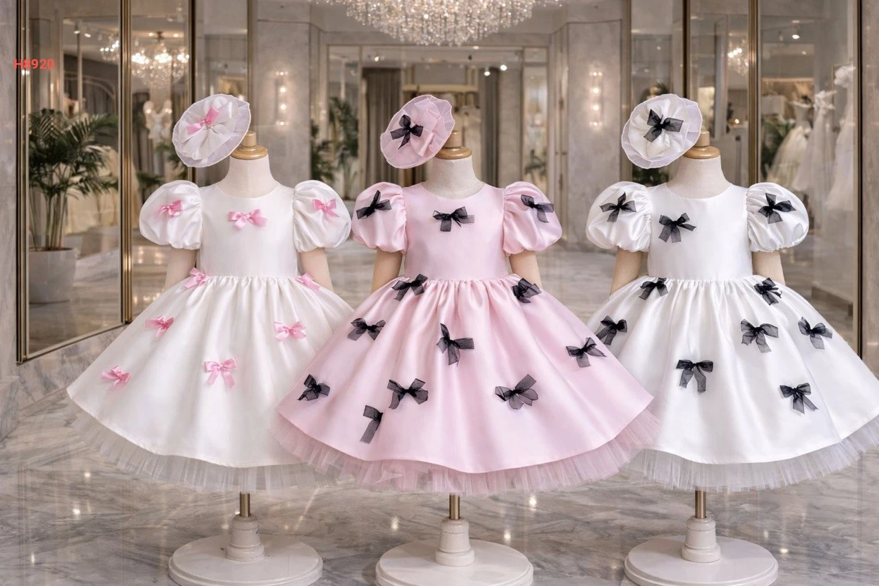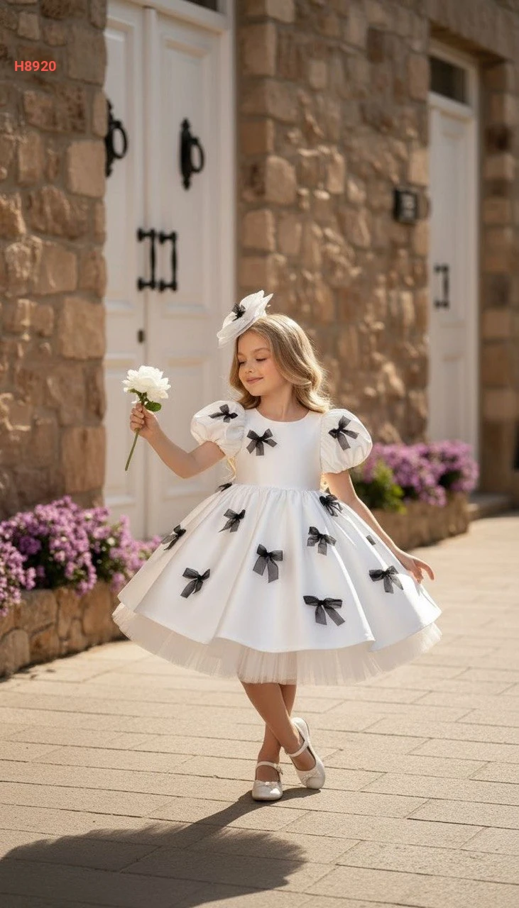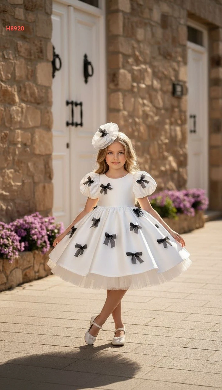 فستان بناتي منفوش مزين فيونكات