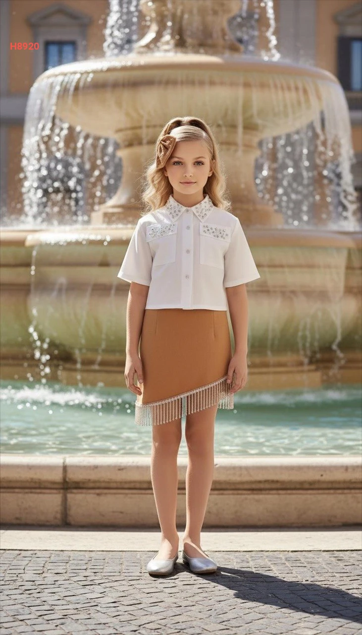 طقم تنورة بناتي بسلاسل حجرية وقميص