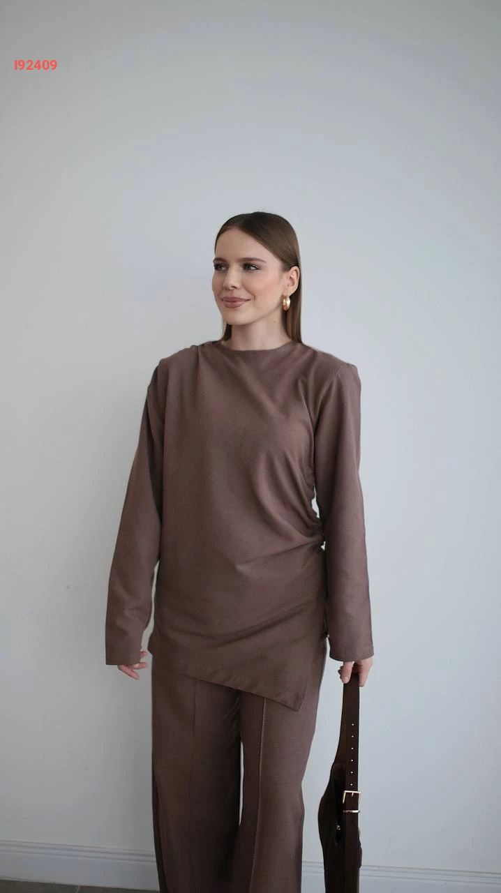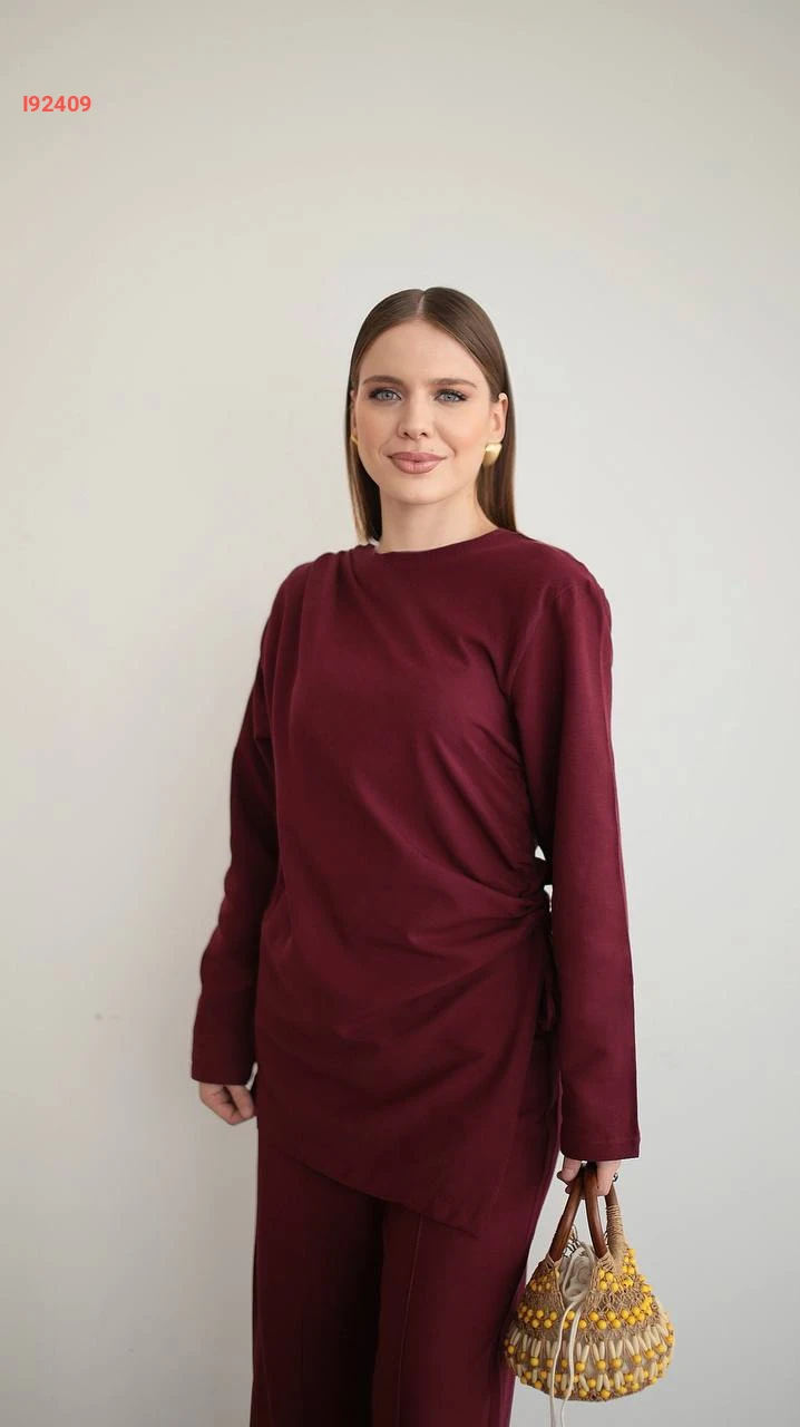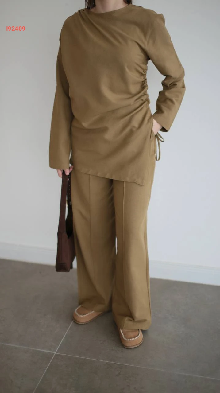 طقم بنطال كتان وتونيك مجمع بربطة