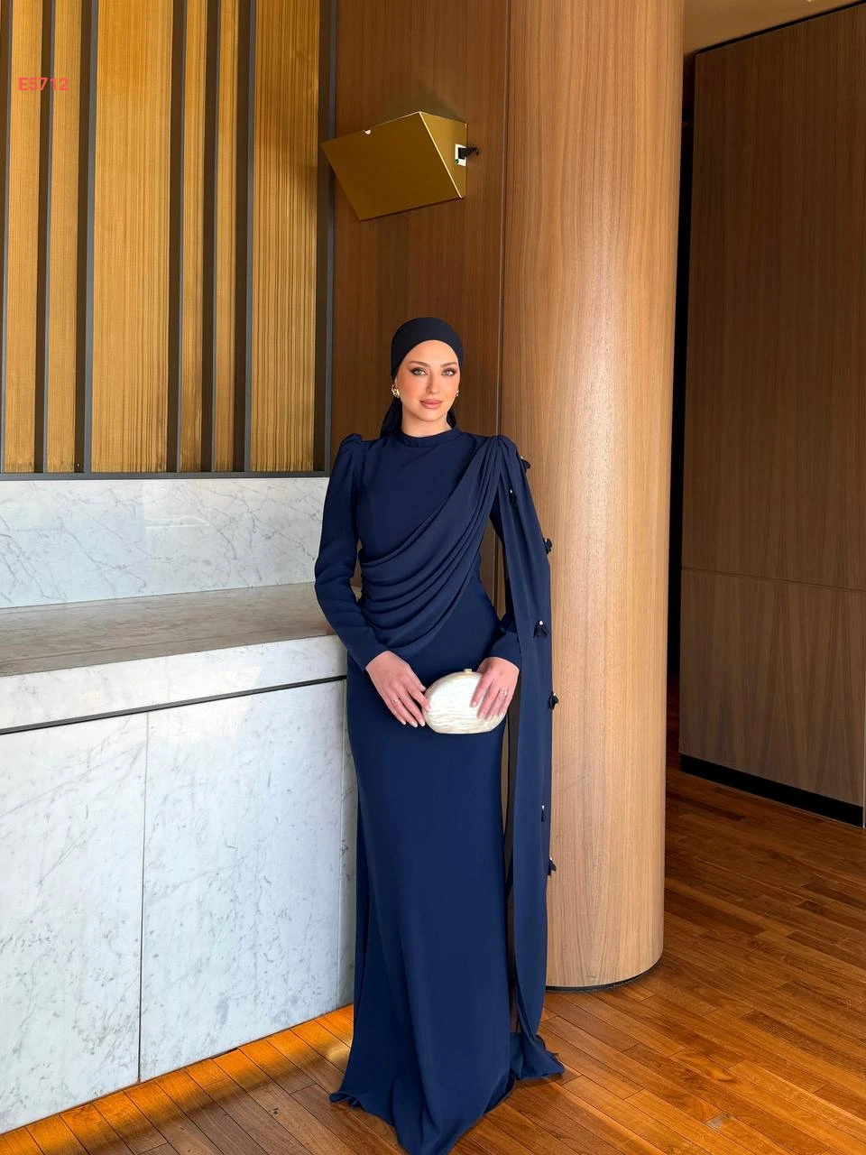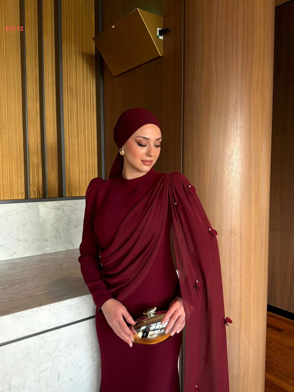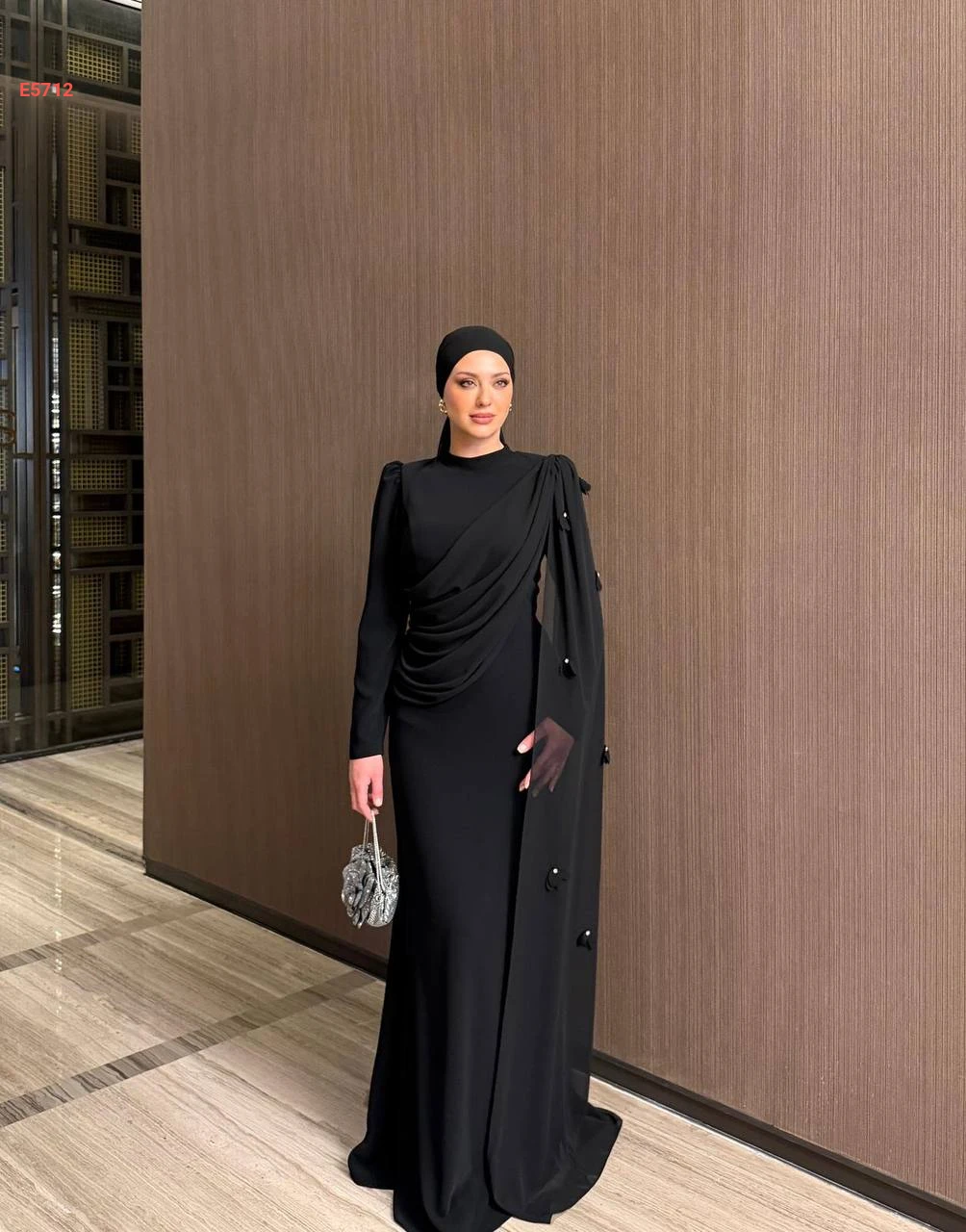 فستان طويل مجمع مع شاحط شيفون جانبي