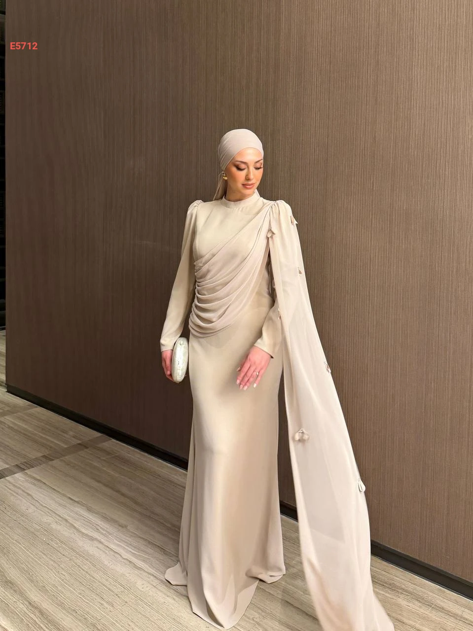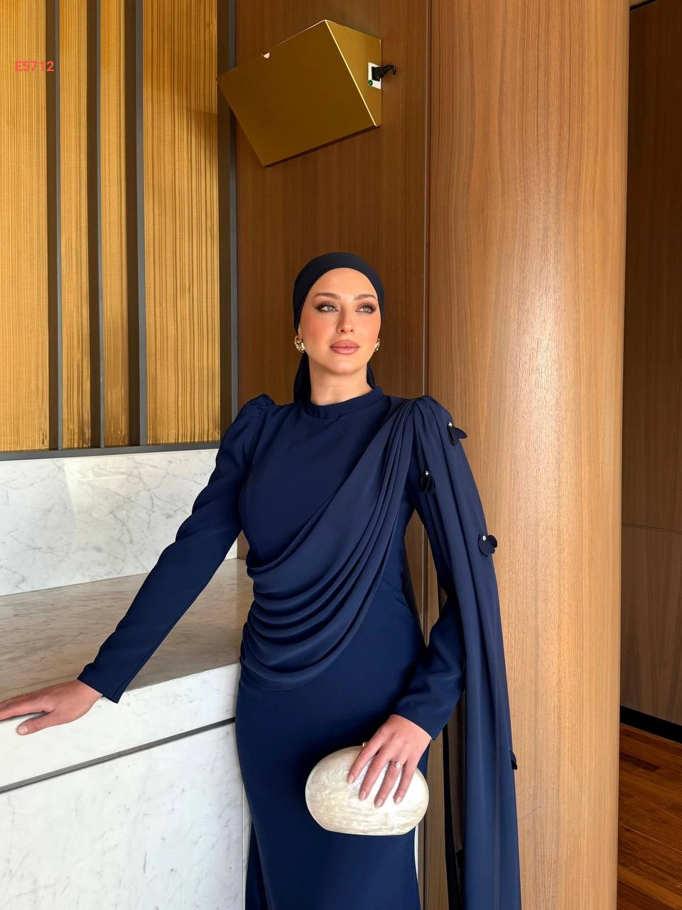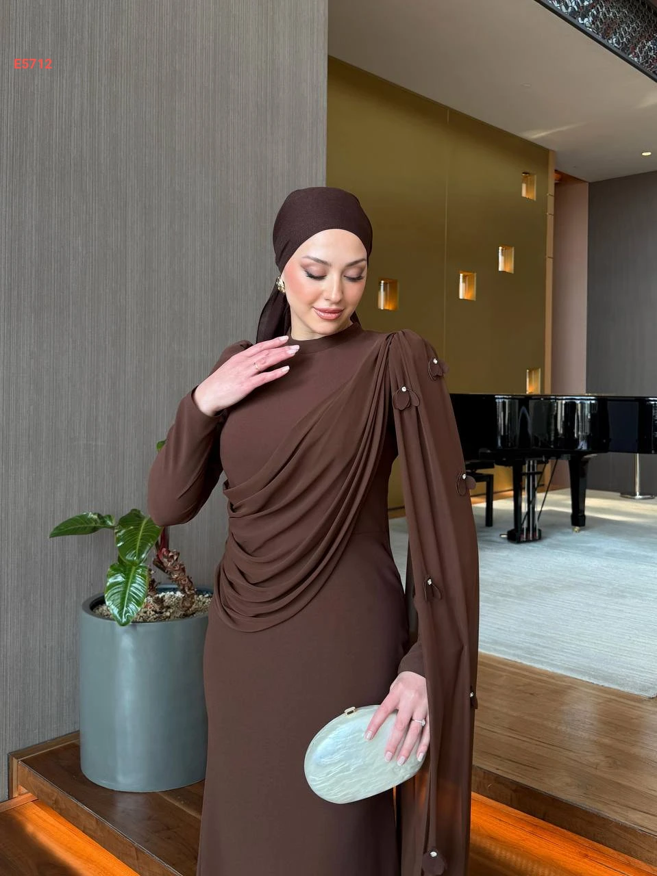 فستان طويل مجمع مع شاحط شيفون جانبي