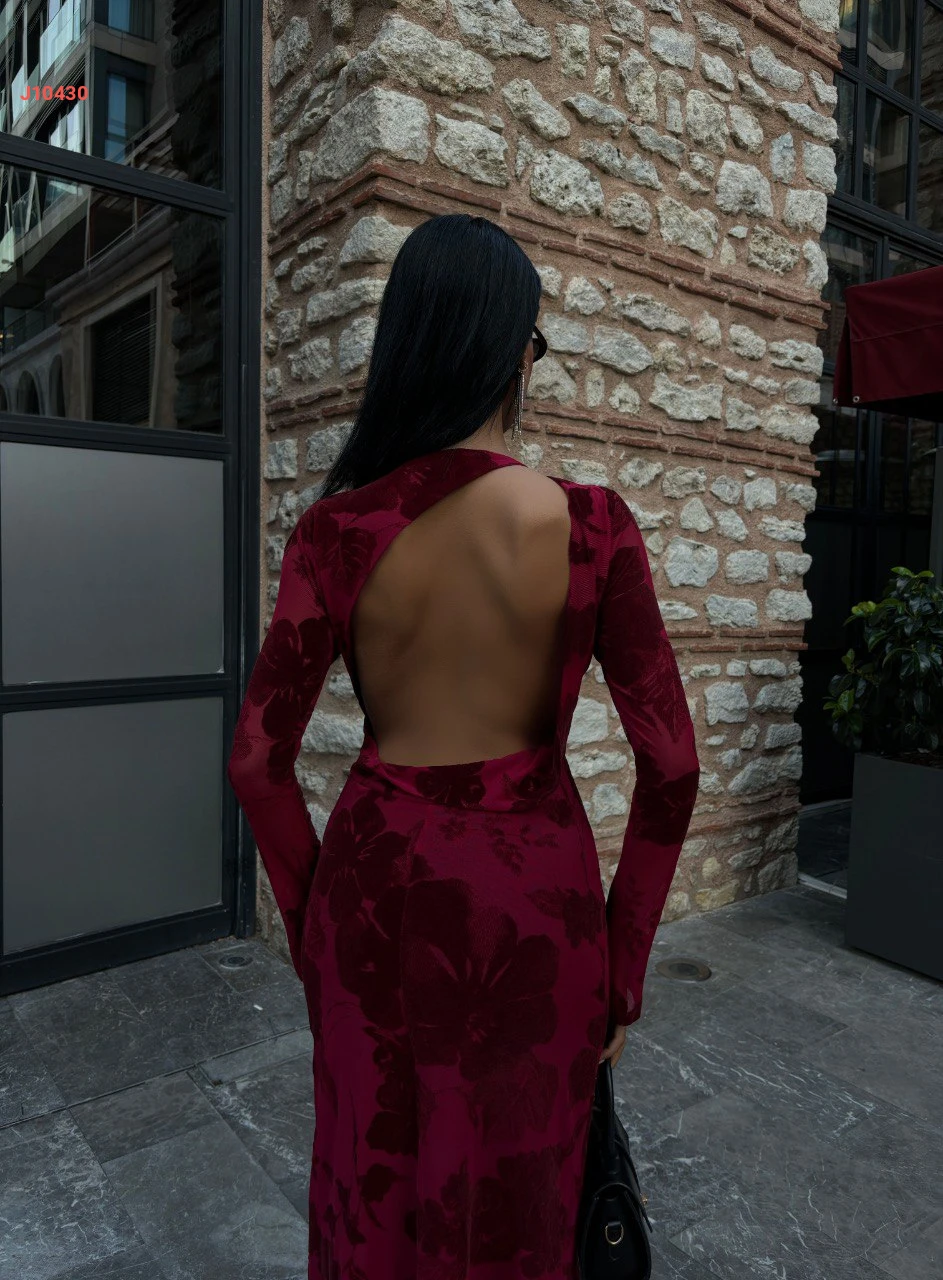 فستان طويل منقوش بظهر مكشوف