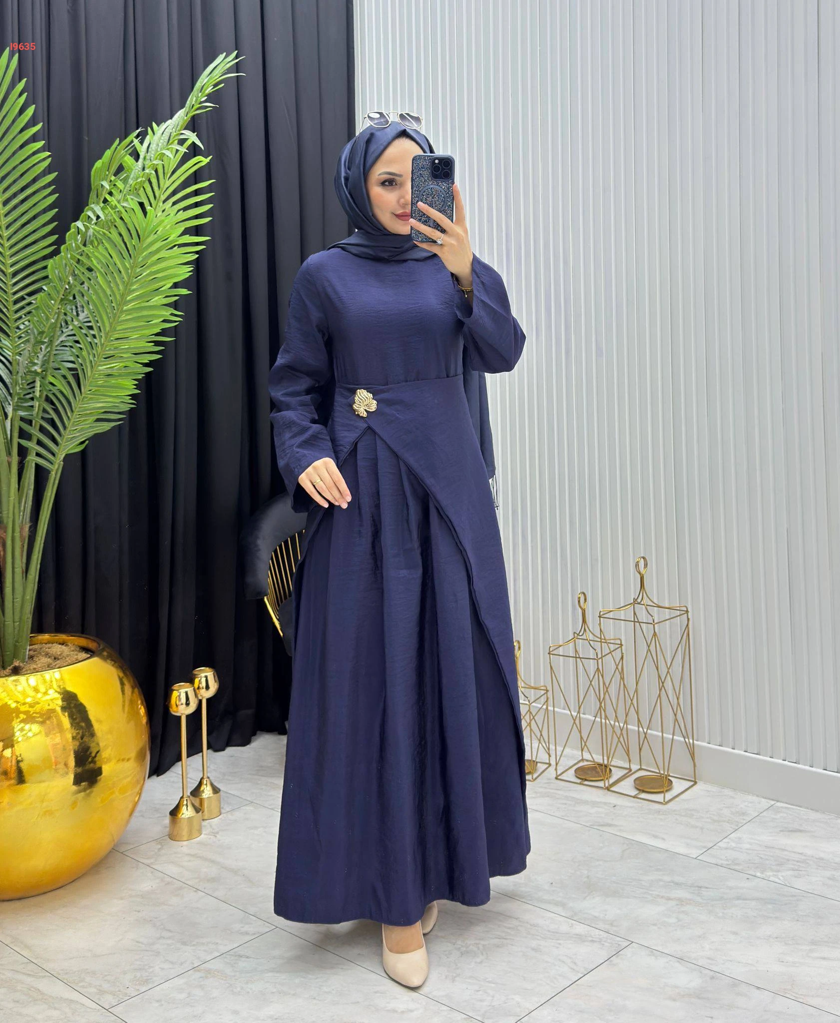 فستان طويل مع بروش دهبي جانبي