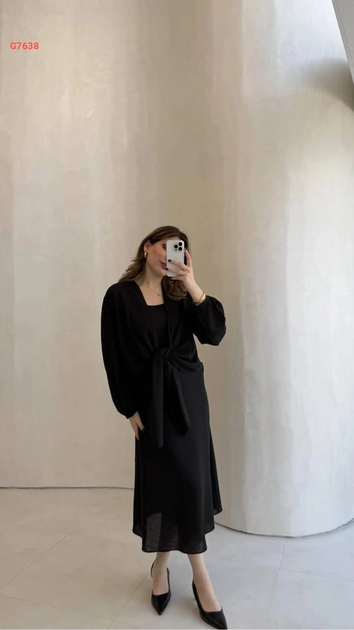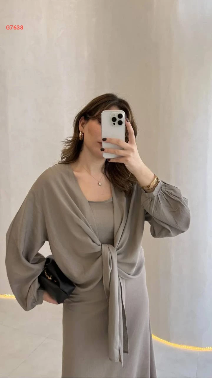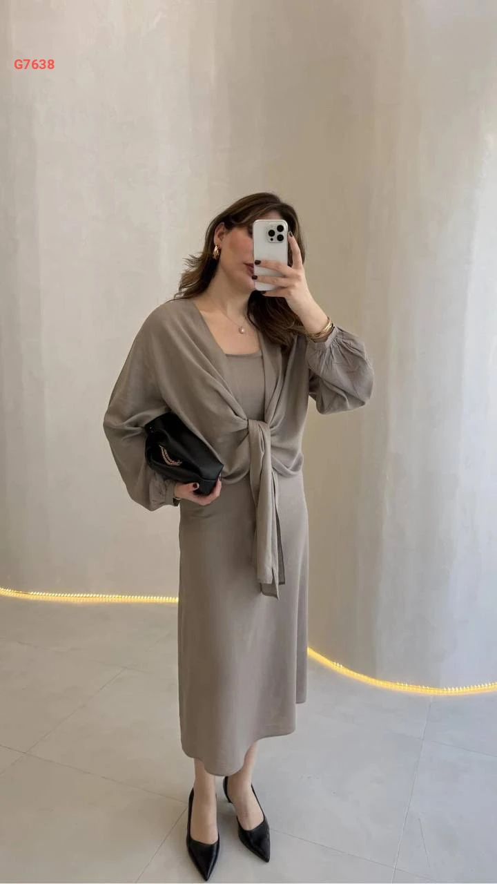 فستان طويل مع بوليرو ربط