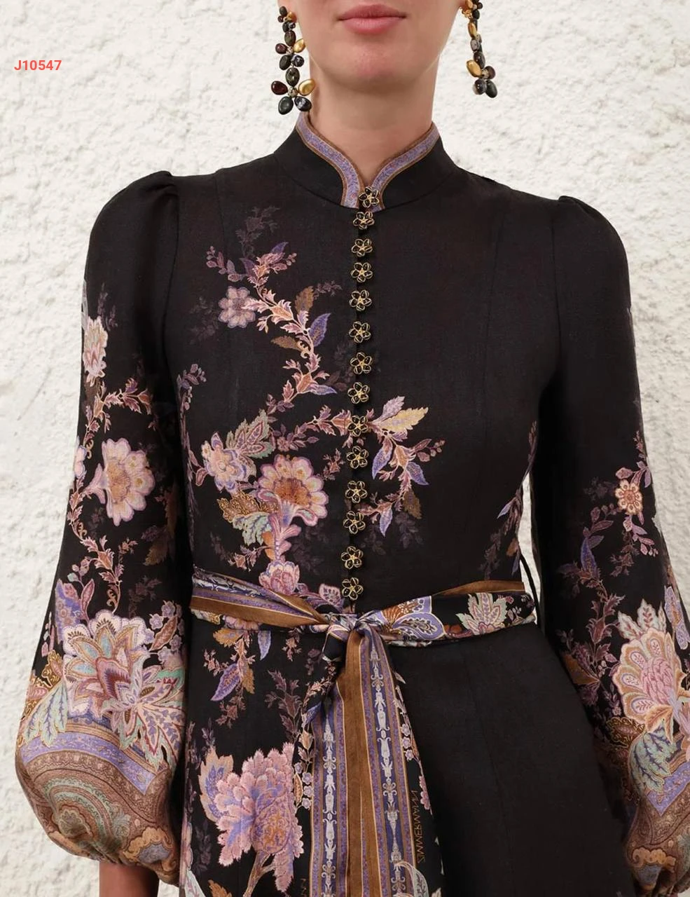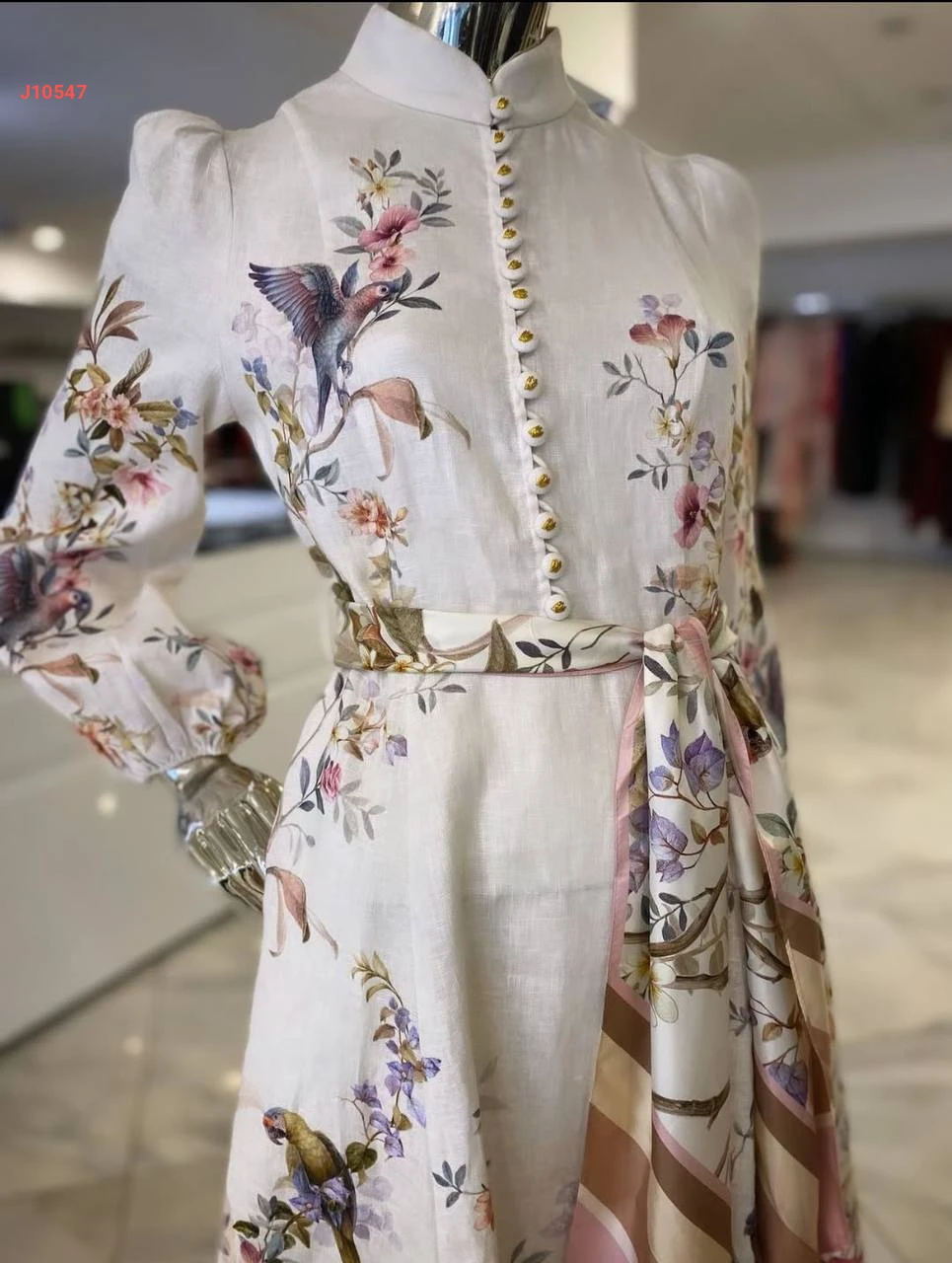 فستان طويل منقوش بأكمام بالونية