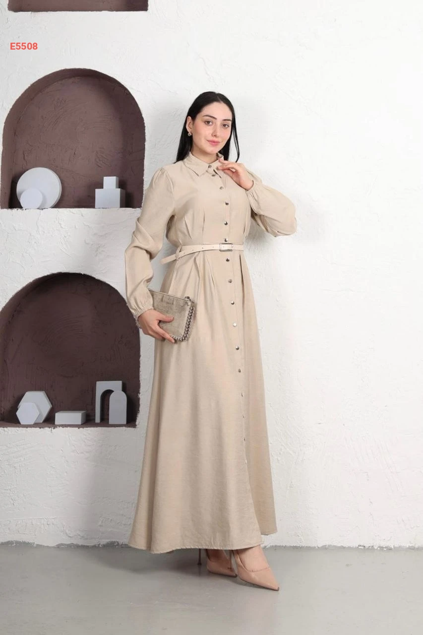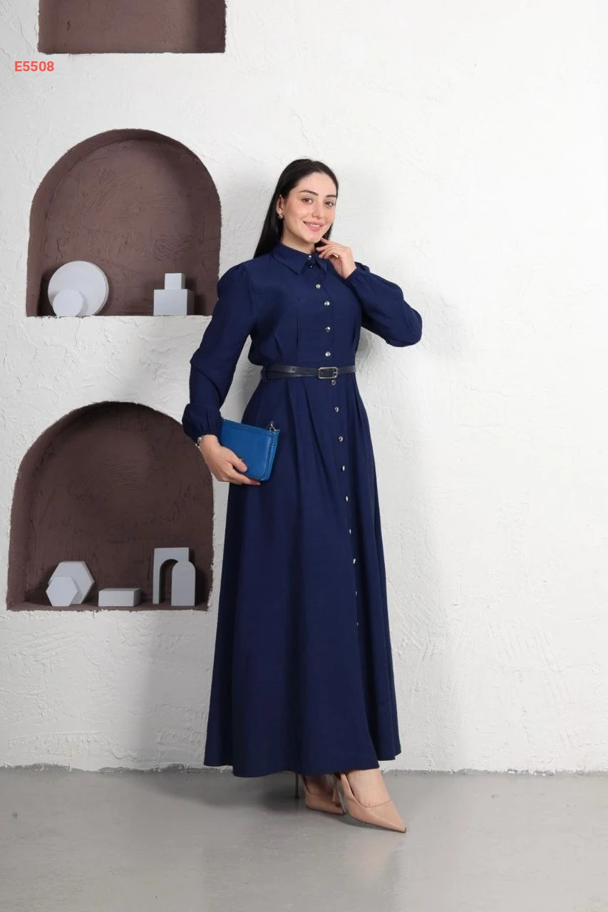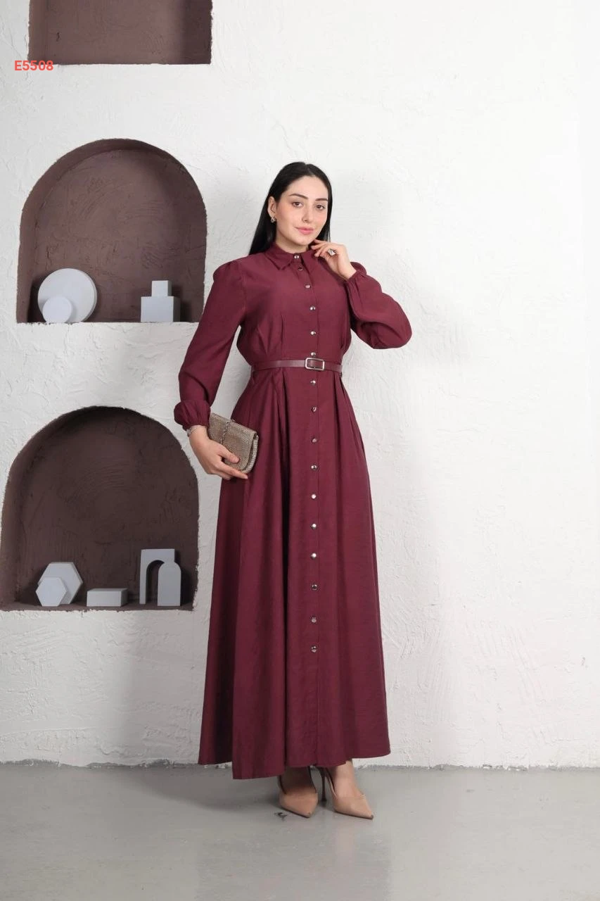 فستان طويل بأزرار وحزام