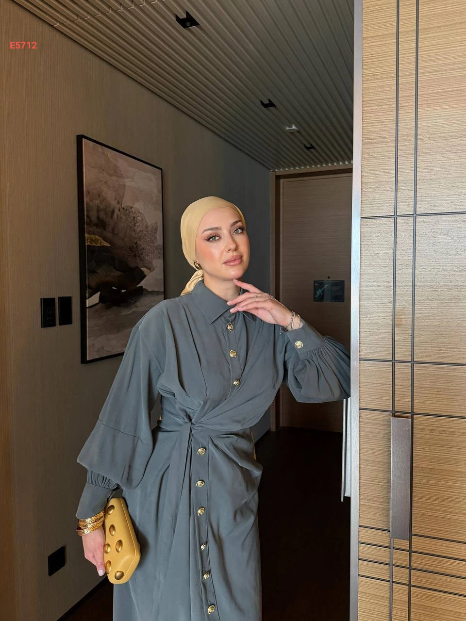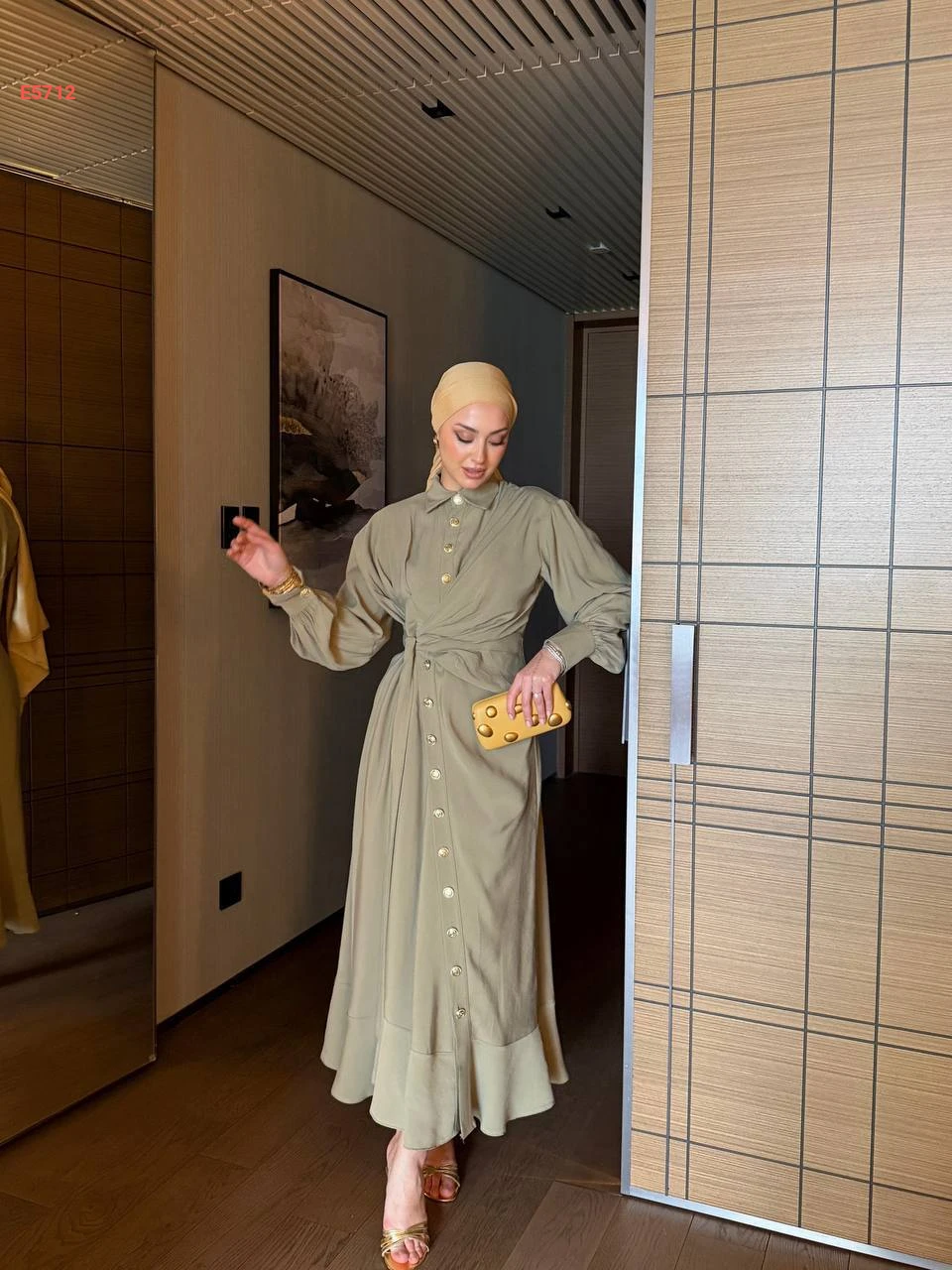 فستان طويل بأزرار وربطة جانبية