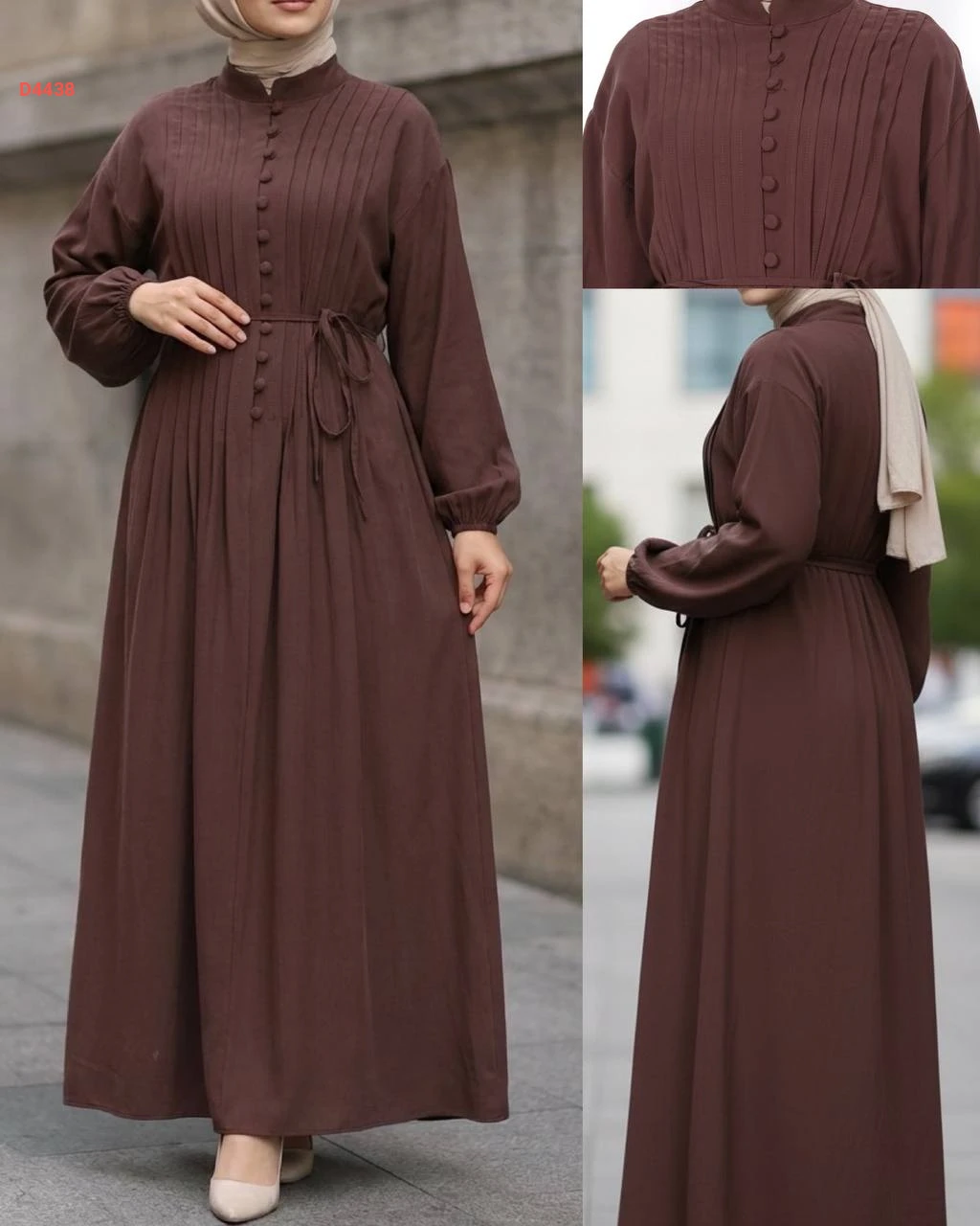 فستان طويل بأزرار نصفية وزنار