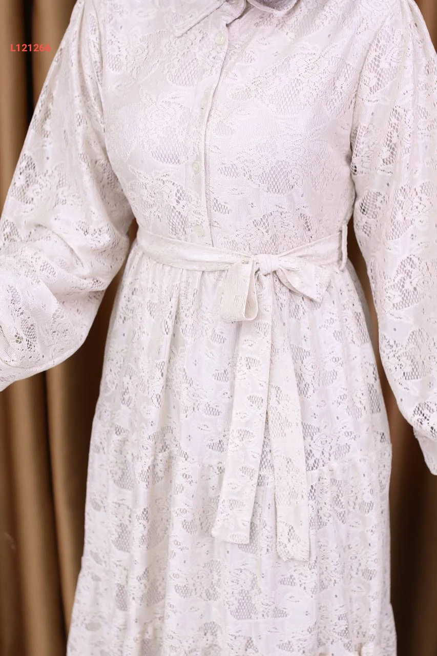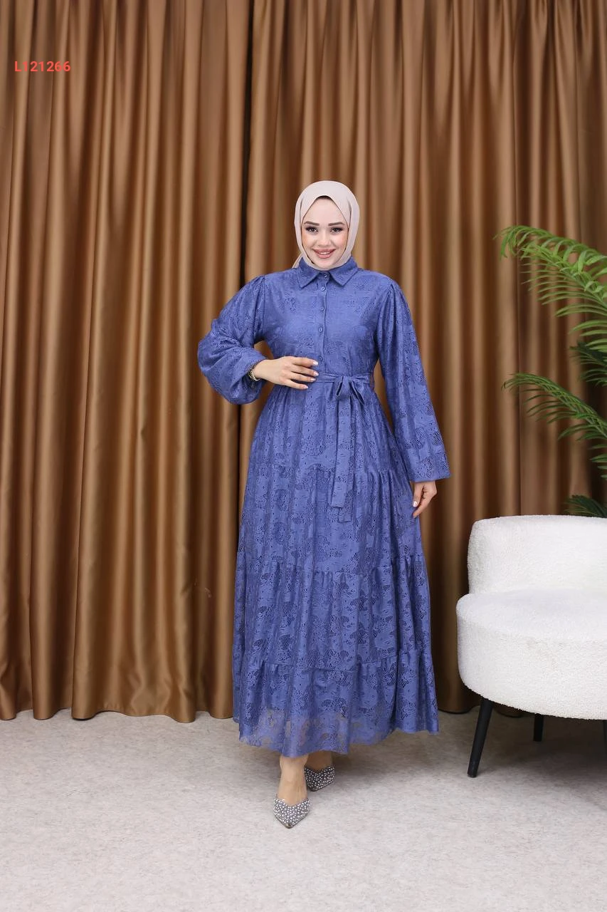 فستان طويل بأزرار نصفية وزنار